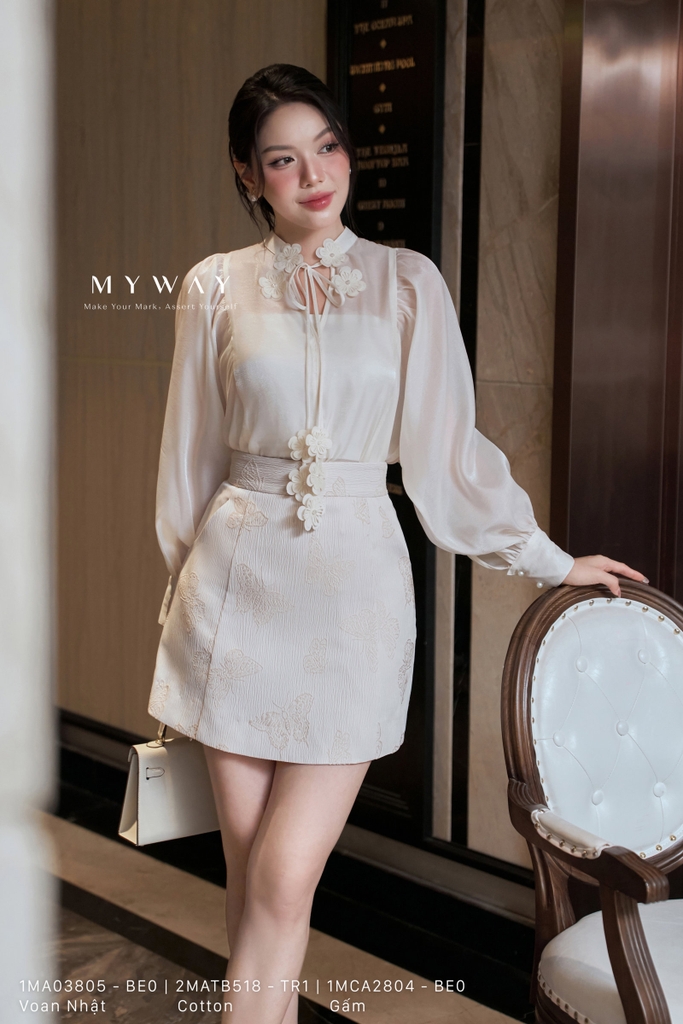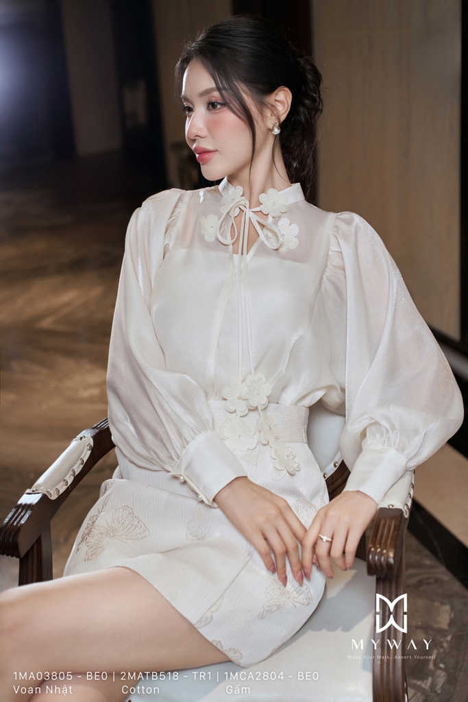Áo sơ mi dáng suông A với thiết kế cổ tàu thanh lịch, độ dài chùm mông giúp tôn dáng và dễ dàng phối hợp trong nhiều hoàn cảnh khác nhau. Sắc be nhã nhặn mang lại cảm giác nhẹ nhàng, tinh tế, phù hợp cho quý cô yêu phong cách tối giản nhưng vẫn muốn giữ nét duyên dáng mềm mại. Chất liệu voan Nhật nhập khẩu cao cấp được xử lý kỹ lưỡng giúp bề mặt vải mịn, thoáng mát, rủ nhẹ và giữ phom chuẩn chỉnh. Điểm nhấn nằm ở chi tiết đính hoa cầu kỳ, tạo nên nét nữ tính và sang trọng cho tổng thể. Tay áo biến tấu tinh tế góp phần làm nổi bật vẻ hiện đại, thanh thoát. Thiết kế không chỉ mang đến sự thoải mái cho người mặc mà còn toát lên phong thái tự tin, thanh tao và thời thượng.