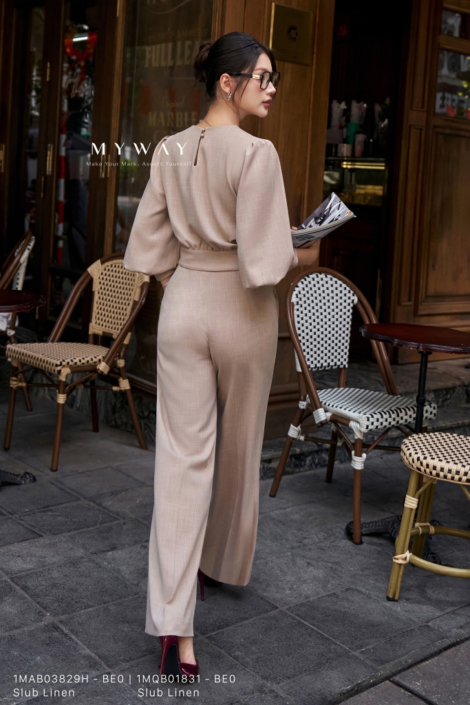 Áo kiểu bo gấu cổ tròn màu Be được thiết kế từ chất liệu Slub Linen (xước nhật, đũi xước) nhập khẩu cao cấp đã qua xử lý, mang đến phom dáng chuẩn chỉnh, thấm hút tốt và tạo cảm giác dễ chịu khi mặc. Phom áo bo eo trẻ trung, cá tính kết hợp với phần gấu bo nhẹ tôn dáng, vừa thanh lịch vừa hiện đại. Điểm nhấn tinh tế nằm ở hoa cài bằng da đính kèm, tạo nét sang trọng và nữ tính cho tổng thể trang phục. Sản phẩm không chỉ mang lại sự thoải mái cho thượng khách mà còn dễ dàng phối hợp với nhiều kiểu quần hoặc chân váy khác nhau, giúp người mặc luôn toát lên vẻ thanh lịch, hiện đại và đầy phong cách.