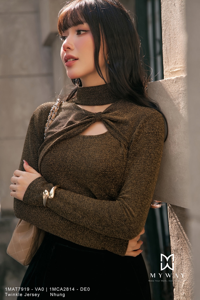 Áo thun dáng ôm với thiết kế cổ lọ và chiều dài ngang hông, tay dài tạo cảm giác gọn gàng và tôn dáng, không túi, không lót, nổi bật với kết cấu tinh tế và chi tiết nơ tạo điểm nhấn mềm mại, sản phẩm được thiết kế từ chất liệu Twinkle Jersey nhúng kim tuyến nhập khẩu cao cấp đã qua xử lý giúp bề mặt vải ánh nhẹ, bắt sáng tinh tế và lên phom chuẩn chỉnh, gam màu vàng đen mang sắc thái cá tính, hiện đại với sự tương phản ấn tượng, trong khi màu vàng gold ánh kim tạo cảm giác sang trọng, nổi bật nhưng vẫn thanh lịch, tổng thể thiết kế mang lại sự thoải mái khi mặc, toát lên phong cách hiện đại, tinh tế và khả năng phối đồ cao, dễ kết hợp cùng chân váy, quần âu hay quần jeans trong nhiều hoàn cảnh khác nhau.