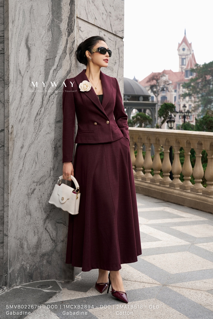 Chân váy xòe được thiết kế với phom dáng xòe mềm mại, chiều dài qua bắp giúp tôn dáng và tạo cảm giác thanh thoát, nữ tính khi mặc. Thiết kế khóa sau kín đáo kết hợp túi tiện lợi và lớp lót bên trong mang lại sự thoải mái, chỉn chu trong suốt quá trình sử dụng. Sản phẩm được làm từ chất liệu dạ lông dê nhập khẩu cao cấp, đã qua xử lý kỹ lưỡng nên bề mặt vải mịn, đứng phom và giữ dáng chuẩn. Điểm nhấn nằm ở phom váy xòe nhẹ kết hợp cùng kết cấu vải tinh tế, giúp che khuyết điểm cơ thể và dễ dàng phối cùng nhiều kiểu áo khác nhau. Gam màu đỏ vang trầm ấm, sang trọng và quyến rũ, tạo chiều sâu cho trang phục, phù hợp cả trong môi trường công sở lẫn những dịp gặp gỡ, dạo phố, mang đến vẻ thanh lịch và phong cách hiện đại với khả năng ứng dụng cao.