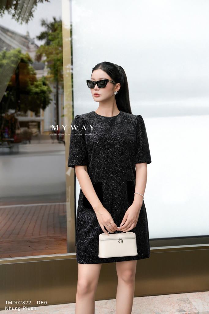 Đầm suông dáng vừa với cổ tròn nhẹ nhàng và độ dài qua gối mang đến vẻ thanh lịch, tinh tế cho người mặc. Thiết kế tay ngắn tạo sự thoải mái và linh hoạt, dễ ứng dụng trong nhiều hoàn cảnh khác nhau. Sản phẩm được chế tác từ chất liệu Nhung Plush (nhung mềm) dệt kim tuyến nhập khẩu cao cấp, đã qua xử lý kỹ lưỡng để lên phom chuẩn chỉnh, giữ dáng đẹp và mang lại cảm giác êm ái khi chạm vào. Tông kim tuyến đen ánh nhẹ sang trọng kết hợp cùng phần phối nhung đen tạo nên điểm nhấn độc đáo, tôn lên nét hiện đại xen lẫn cổ điển. Đầm được thiết kế khóa sau tinh tế, có túi tiện lợi và lớp lót mềm mại giúp người mặc luôn cảm thấy dễ chịu. Với phom suông vừa phải, chiếc đầm không chỉ che khuyết điểm tốt mà còn toát lên vẻ thanh lịch, thời thượng và khả năng phối đồ linh hoạt, phù hợp cho cả những buổi tiệc nhẹ hay sự kiện trang trọng.
