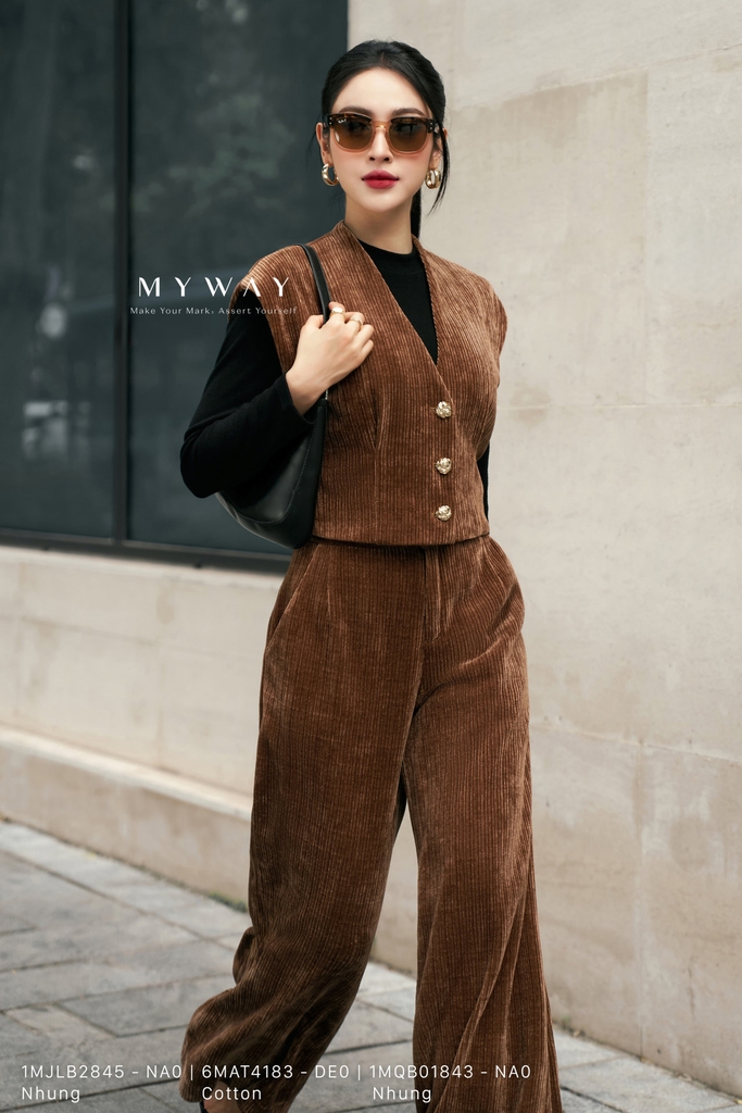Áo kiểu ôm vừa với thiết kế cổ tim và chiều dài ngang hông mang đến vẻ nữ tính, thanh lịch nhưng vẫn trẻ trung. Phần vai chờm tạo cảm giác mềm mại, giúp tôn dáng và che khuyết điểm bờ vai. Sản phẩm được hoàn thiện trên nền chất liệu Nhung gân tăm Nâu nhập khẩu cao cấp, đã qua xử lý để giữ phom chuẩn, mềm mại và tạo hiệu ứng thị giác sang trọng. Chi tiết khuy trang trí là điểm nhấn nổi bật, giúp chiếc áo thêm tinh tế và cuốn hút. Với kết cấu thoải mái, có lót và không túi, áo mang đến trải nghiệm mặc dễ chịu, đồng thời dễ phối với nhiều trang phục, toát lên phong cách hiện đại và khả năng phối đồ linh hoạt cho nhiều dịp khác nhau.