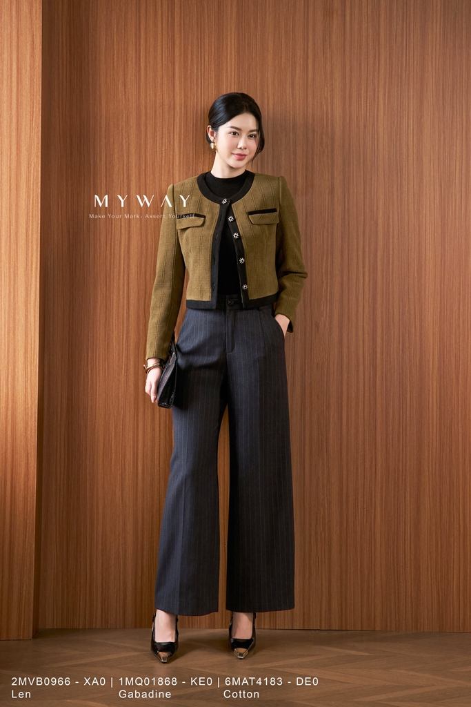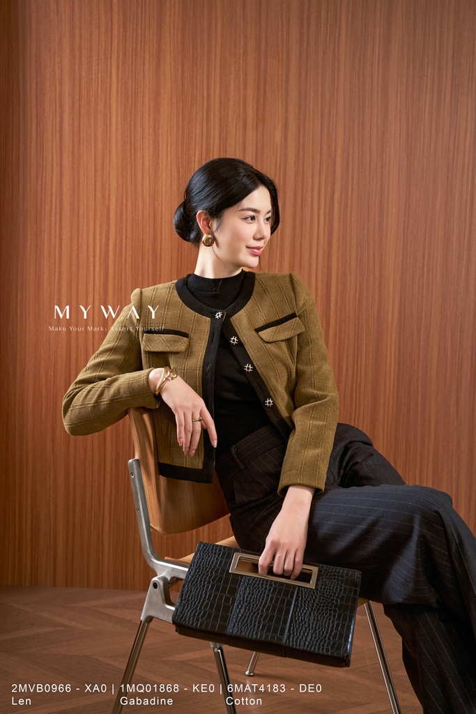 Phối với set bộ My Way gợi ý hoặc áo sơ mi/ áo kiểu sành điệu, phụ kiện đơn giản: mắt kính, bông tai hay một đôi cao gót kiểu dáng hiện đại,... là bạn đã có cho mình một Outfit đa dụng dù là cho nơi công sở hay dạo phố thanh lịch và thoải mái.