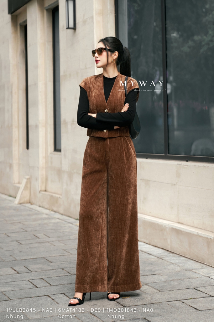 Quần suông phom suông vừa, dài qua mắt cá chân mang đến vẻ thanh lịch và dễ ứng dụng trong nhiều hoàn cảnh. Thiết kế khóa trước, có túi tiện lợi cùng bề mặt vải gân tăm màu nâu tạo điểm nhấn tinh tế và sang trọng. Sản phẩm được may từ chất liệu nhung nhập khẩu cao cấp đã qua xử lý, giúp lên phom chuẩn, mềm mại và tôn dáng một cách tự nhiên. Điểm nổi bật của mẫu quần nằm ở phom dáng hài hòa và chất liệu vải cao cấp, mang lại sự thoải mái tối đa cho người mặc. Tổng thể giúp thượng khách toát lên vẻ hiện đại, phong cách và sở hữu khả năng phối đồ linh hoạt.