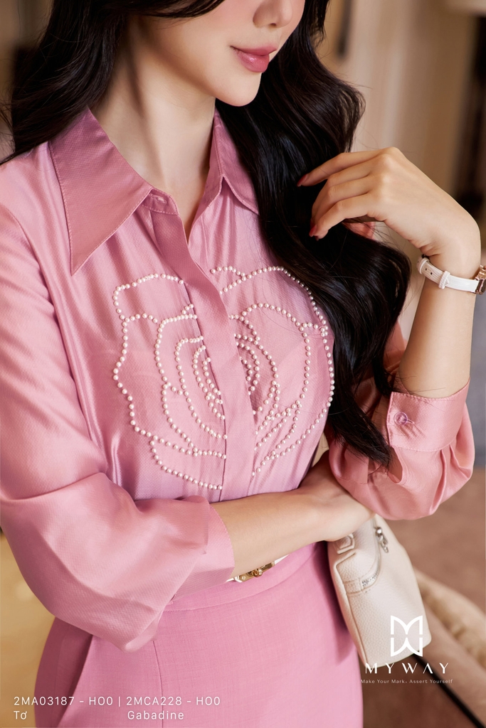 Áo sơ mi dáng suông vừa, cổ Đức cổ điển, dài ngang mông, tay dài, tạo sự thanh lịch và duyên dáng. Thiết kế tinh tế với chi tiết đính hoa 3D nổi bật trên nền vải trắng, kết hợp hiệu ứng kim tuyến chìm nhẹ nhàng, mang đến sự lấp lánh sang trọng nhưng không phô trương.Sản phẩm được may từ chất liệu tơ nhập khẩu cao cấp, đã qua xử lý kỹ lưỡng, giúp bề mặt vải mềm mại, thoáng nhẹ nhưng vẫn giữ được form chuẩn chỉnh.Điểm nhấn nằm ở chất liệu vải cao cấp kết hợp chi tiết hoa đính tinh xảo, tôn lên sự nữ tính và hiện đại cho người mặc.
