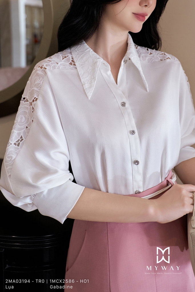 Áo sơ mi dáng suông, cổ Đức thanh lịch, dài ngang mông, tay lỡ thoải mái. Chi tiết kết cấu tinh tế với cổ áo, cầu vai phối ren tạo điểm nhấn nổi bật, mang đến vẻ hiện đại, nữ tính.Sản phẩm được làm từ chất liệu lụa nhập khẩu cao cấp, đã qua xử lý kỹ lưỡng, giữ phom chuẩn chỉnh, mềm mại và thoáng mát khi mặc.Tông màu trắng trang nhã, dễ dàng phối cùng nhiều kiểu chân váy, quần hay phụ kiện, mang lại phong cách thanh lịch, hiện đại, phù hợp cả trong môi trường công sở lẫn các dịp dạo phố.Áo mang lại sự thoải mái tối đa cho người mặc đồng thời tạo ấn tượng tinh tế, chỉn chu, làm nổi bật gu thẩm mỹ thanh lịch và sành điệu.