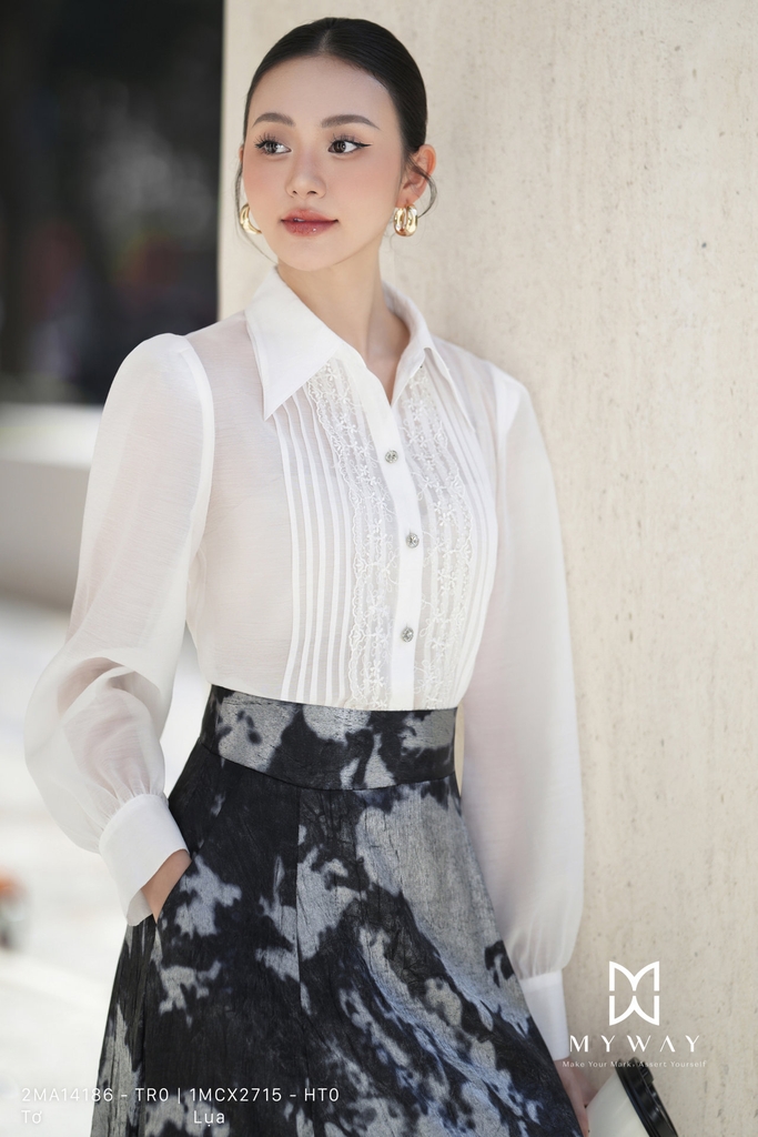 Áo sơ mi trắng phối ren – thanh lịch, tinh tế chuẩn phong cách công sở.Thiết kế với phom suông vừa, cổ Đức cổ điển và tay dài kín đáo, chiếc áo sơ mi trắng mang đến vẻ ngoài trang nhã và chuyên nghiệp. Điểm nhấn tinh tế nằm ở phần dây ren phối dọc thân áo, tạo chiều sâu cho tổng thể mà vẫn giữ nét thanh lịch.Chất liệu tơ nhập khẩu cao cấp, xử lý kỹ lưỡng giúp áo lên phom chuẩn, nhẹ và thoáng – mang lại cảm giác thoải mái trong mọi hoạt động. Màu trắng dễ phối, phù hợp với nhiều phong cách từ công sở đến gặp gỡ đối tác, giúp quý cô luôn tự tin và cuốn hút.