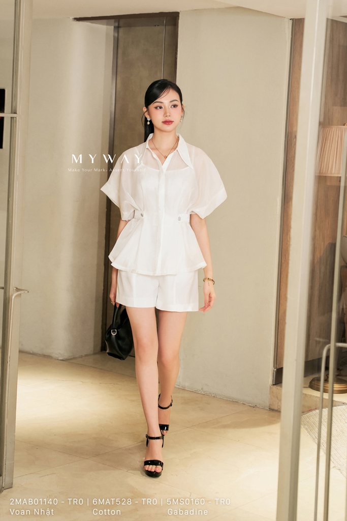 (2 màu) Áo sơ mi ngắn tay dáng peplum