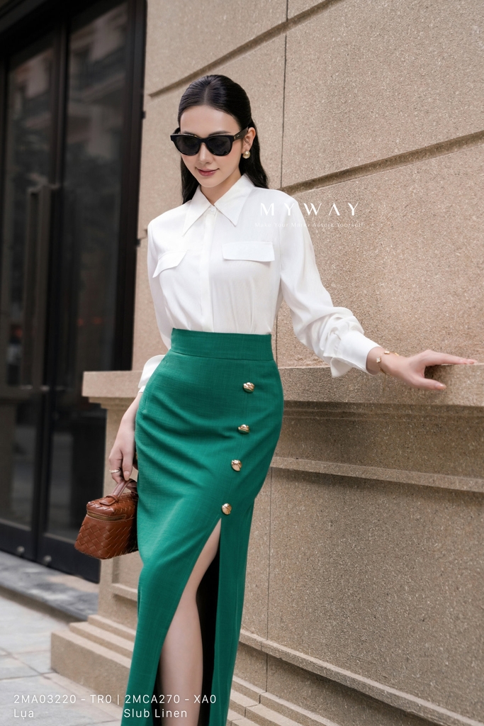 Phối set đồ My Way gợi ý hoặc áo sơ mi/ áo kiểu hay những phụ kiện đơn giản: trang sức, túi xách cùng tông màu... bạn đã có cho mình một diện mạo hoàn hảo, nổi bật trong đám đông.