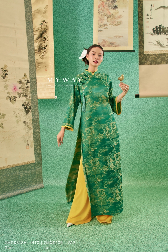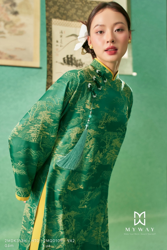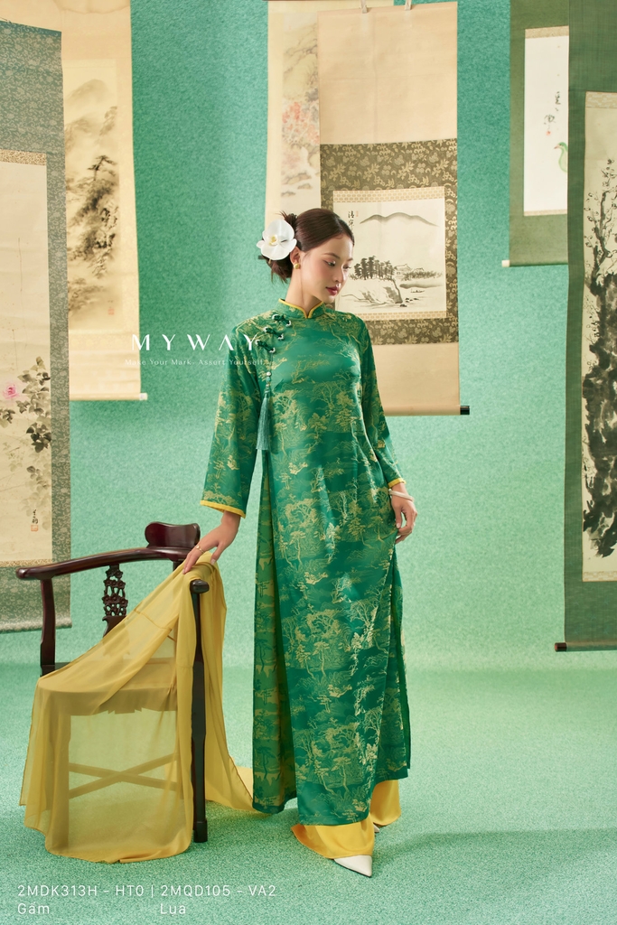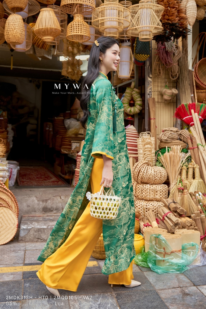 Nằm trong BST DIÊN VĨ, thuộc dòng sản phẩm Frenchy thanh lịch, nhẹ nhàng cùng Quý cô xuống phố du xuân ấn tượng, áo dài My Way kết hợp truyền thống và hiện đại để nàng có vẻ ngoài duyên dáng, thanh thoát.