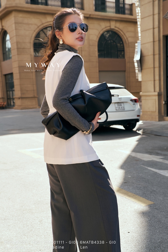 Phối với set bộ My Way gợi ý hoặc áo sơ mi/ áo kiểu sành điệu, phụ kiện đơn giản: mắt kính, bông tai hay một đôi cao gót kiểu dáng hiện đại,... là bạn đã có cho mình một Outfit đa dụng dù là cho nơi công sở hay dạo phố thanh lịch và thoải mái.