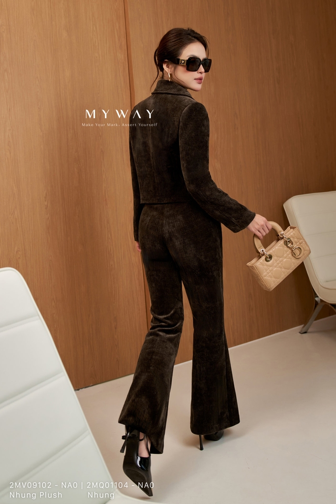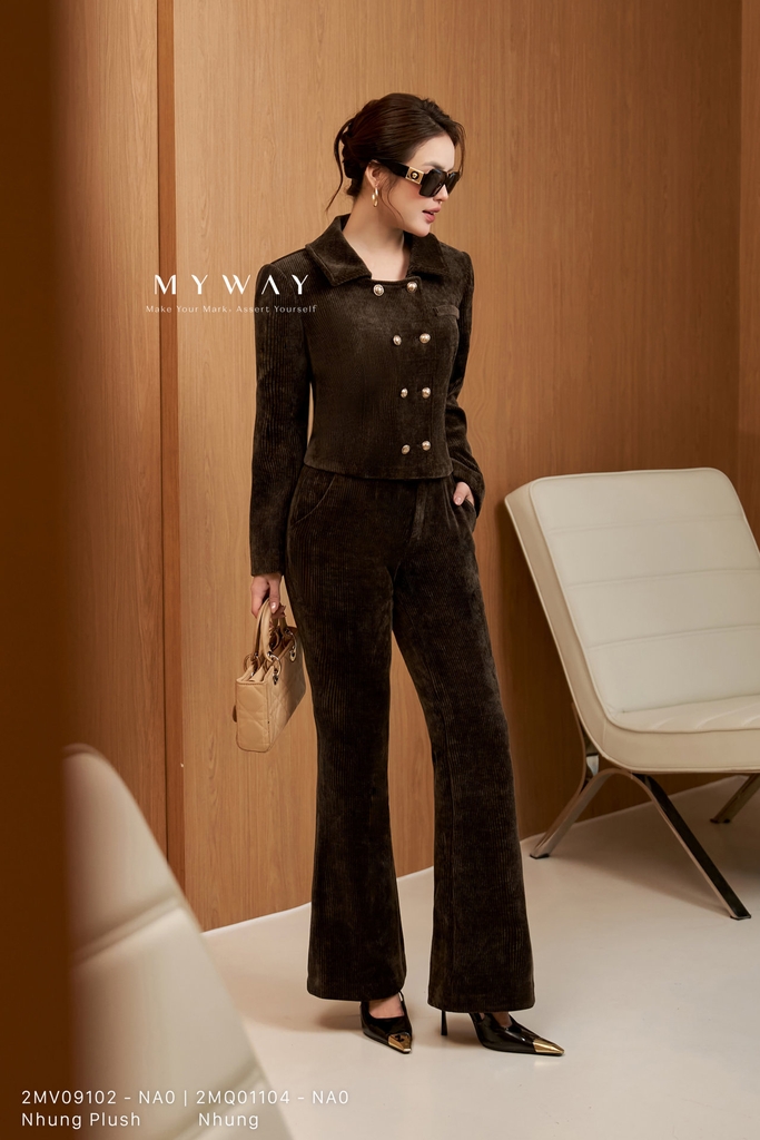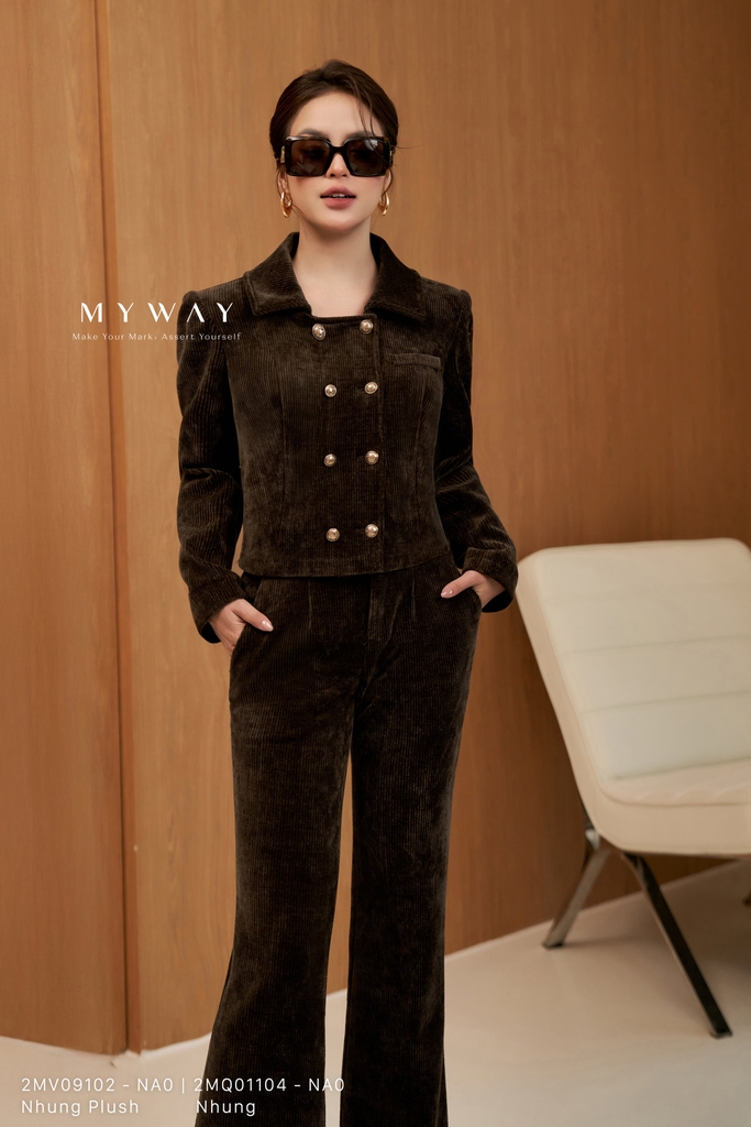 Áo vest , suông vừa, cổ cách điệu, dài ngang hông, tay dài với đệm vai/ken vai, có lót, tinh tế với kết cấu và chất liệu nhung sọc nâu. Sản phẩm được làm từ chất liệu Nhung Plush nhập khẩu cao cấp, đã qua xử lý và giữ phom chuẩn chỉnh, hiện đại. Điểm nhấn của áo nằm ở phom dáng, chất liệu và chi tiết khuy trang trí, mang lại sự thoải mái tối đa, toát lên phong cách hiện đại, thanh lịch và dễ phối đồ.