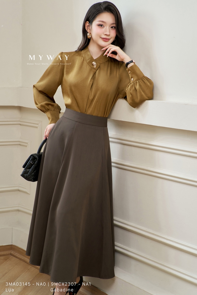 Áo sơ mi dáng suông vừa, cổ biến kiểu hiện đại, dài ngang hông với tay dài thanh thoát mang đến vẻ ngoài chỉn chu và tinh tế. Sản phẩm được thiết kế từ chất liệu lụa nhập khẩu cao cấp, đã qua xử lý kỹ lưỡng để giữ phom chuẩn chỉnh, bề mặt mịn màng và thoáng mát khi mặc. Điểm nhấn nổi bật nằm ở phần cổ áo cách điệu cùng hàng khuy trang trí sang trọng, tạo nên sự khác biệt đầy tinh tế. Với gam màu nâu trầm ấm và trắng tính khôi, chiếc áo dễ dàng kết hợp cùng nhiều phong cách, vừa che khuyết điểm cơ thể vừa tôn lên vẻ thanh lịch, mang lại cho người mặc sự thoải mái và phong cách hiện đại trong mọi hoàn cảnh.