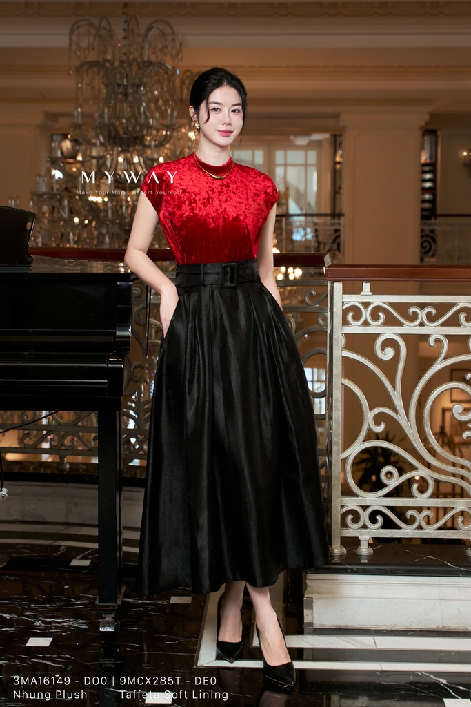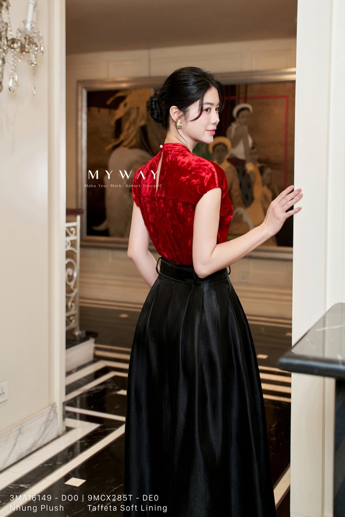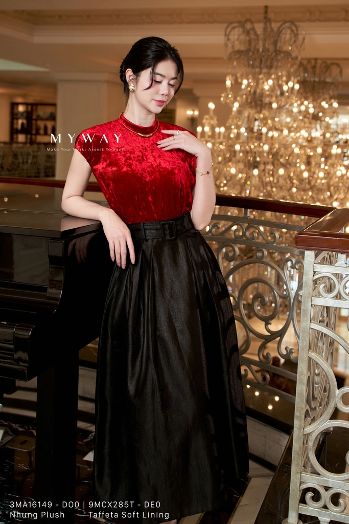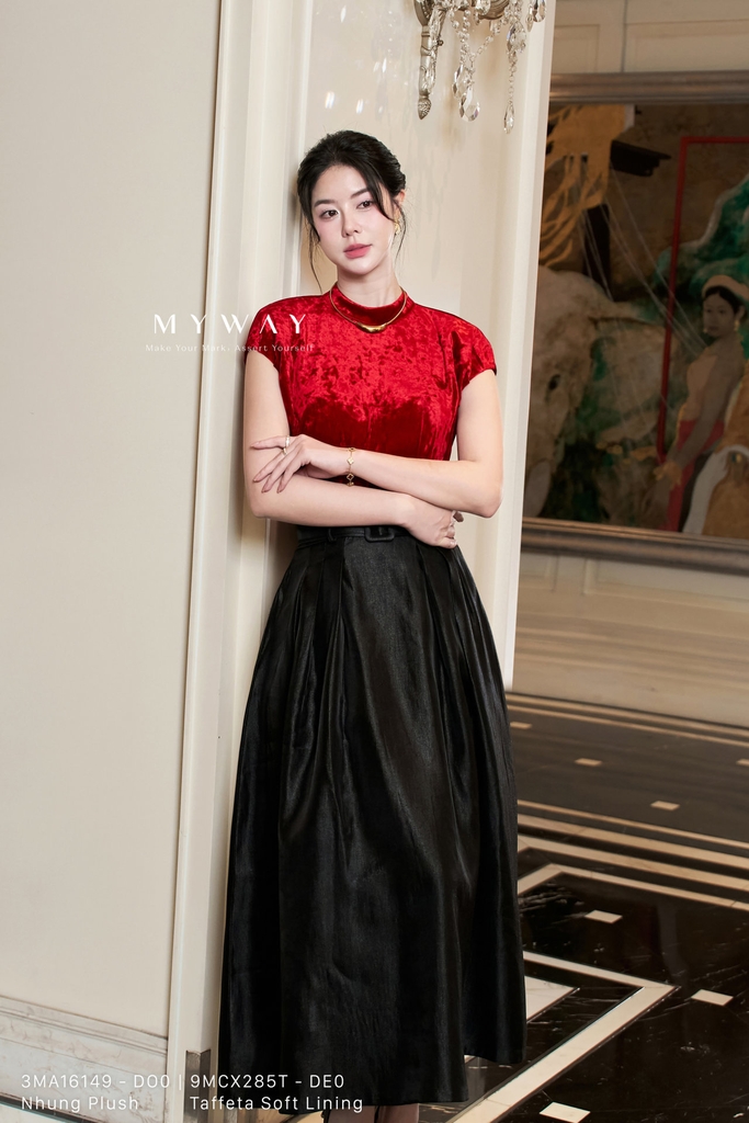 Áo kiểu dáng suông vừa, cổ biến kiểu, tay chờm hiện đại, dài ngang hông mang đến nét phóng khoáng và tinh tế cho người mặc. Sản phẩm được thiết kế từ chất liệu nhung Plush (nhung mềm) nhập khẩu cao cấp, đã qua xử lý tỉ mỉ để giữ phom chuẩn chỉnh, bề mặt mềm mịn và sang trọng. Điểm nhấn nằm ở kết cấu tinh tế cùng chất liệu cao cấp, giúp chiếc áo vừa dễ mặc vừa tạo sự khác biệt. Với gam màu đỏ rực rỡ, thiết kế không chỉ mang lại sự thoải mái mà còn toát lên vẻ cuốn hút, hiện đại, đồng thời dễ dàng phối hợp cùng nhiều phong cách khác nhau, từ thanh lịch đến cá tính.