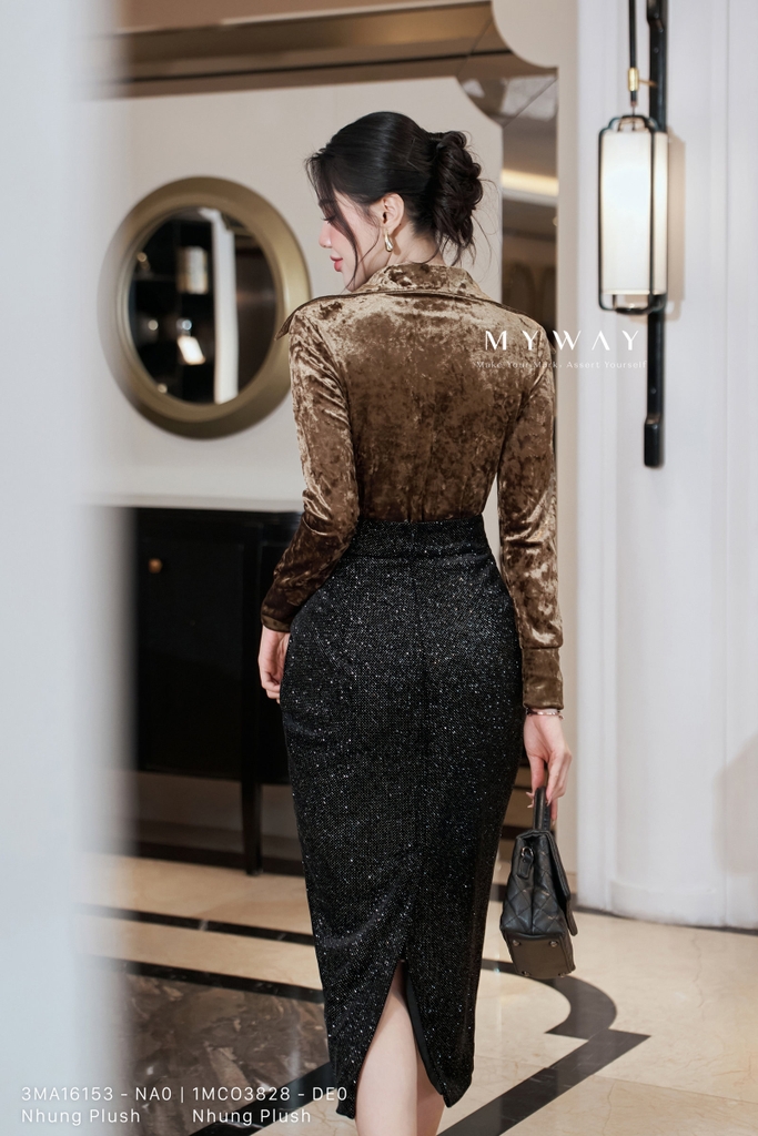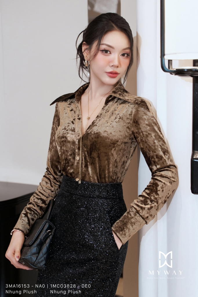 Áo kiểu dáng ôm vừa, dài ngang hông mang nét nữ tính và tinh tế, được thiết kế với phần cổ biến kiểu tạo điểm nhấn duyên dáng và hiện đại. Chất liệu nhung Plush (nhung mềm) nhập khẩu cao cấp được xử lý kỹ lưỡng giúp bề mặt vải có độ bóng nhẹ, chạm tay mềm mịn và lên phom chuẩn chỉnh. Sắc nâu vàng sang trọng gợi cảm giác ấm áp, thời thượng, phù hợp cho những ngày thu đông. Khuy áo nhập khẩu tinh xảo tôn lên tổng thể thanh lịch, trong khi phom dáng ôm nhẹ giúp tôn đường nét cơ thể mà vẫn mang lại sự thoải mái khi vận động. Thiết kế dễ phối, phù hợp cho nhiều phong cách từ công sở hiện đại đến dạo phố thanh lịch.