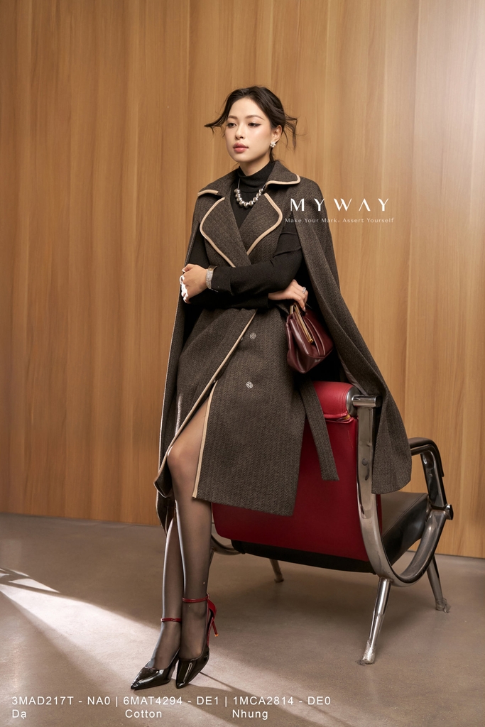 Nằm trong BST mới nhất từ MY WAY, thuộc dòng sản phẩm Frenchy thanh lịch, cá tính theo phong cách Out-door phóng khoáng của Quý cô hiện đại, áo măng tô My Way mang hơi hướng trẻ trung, năng động “nạp” năng lượng cho ngày làm việc năng lượng.
