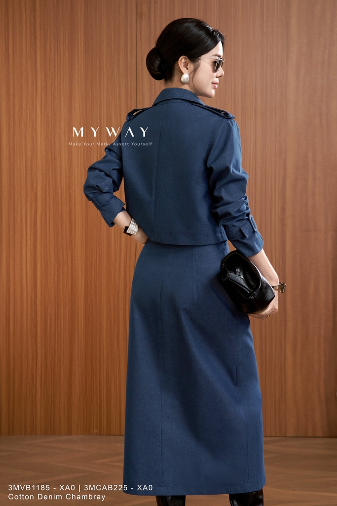 Chân váy ôm đứng dáng dài qua bắp, có túi và lót trong, được thiết kế từ chất liệu Cotton Denim Chambray (vải bò jean) nhập khẩu cao cấp, lên phom chuẩn chỉnh và giữ dáng đẹp. Gam màu xanh bò trẻ trung, hiện đại, dễ phối cùng nhiều kiểu áo khác nhau. Điểm nhấn nằm ở phom váy cách điệu cùng đường xẻ trước tinh tế, vừa tạo sự khác biệt vừa giúp tôn dáng và che khuyết điểm hiệu quả. Sản phẩm mang lại cảm giác thoải mái khi mặc, toát lên vẻ hiện đại và linh hoạt trong phối đồ.