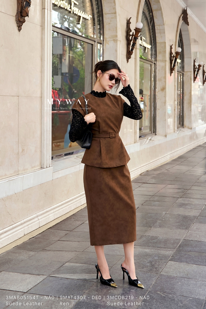 Chân váy ôm vừa dài qua bắp chân được thiết kế từ chất liệu da lộn (màu nâu) và nhung nhập khẩu cao cấp (màu tím mận, xanh lá cây đậm) những chất liệu sang trọng đã qua xử lý kỹ lưỡng để tạo nên form dáng quyến rũ và hiện đại. Phom váy ôm vừa vặn, có lót trong tinh tế, giúp tôn đường cong cơ thể mà vẫn đảm bảo sự thoải mái tối đa khi di chuyển. Điểm nhấn nằm ở chất liệu vải cao cấp với bề mặt mềm mịn và hiệu ứng ánh nhẹ, mang đến cảm giác ấm áp và quý phái. Dù phối cùng áo sơ mi hay áo len, chiếc váy vẫn dễ dàng tôn lên vẻ thanh lịch, tinh tế và thời thượng của người mặc, một lựa chọn lý tưởng cho quý cô yêu phong cách hiện đại và chỉn chu.
