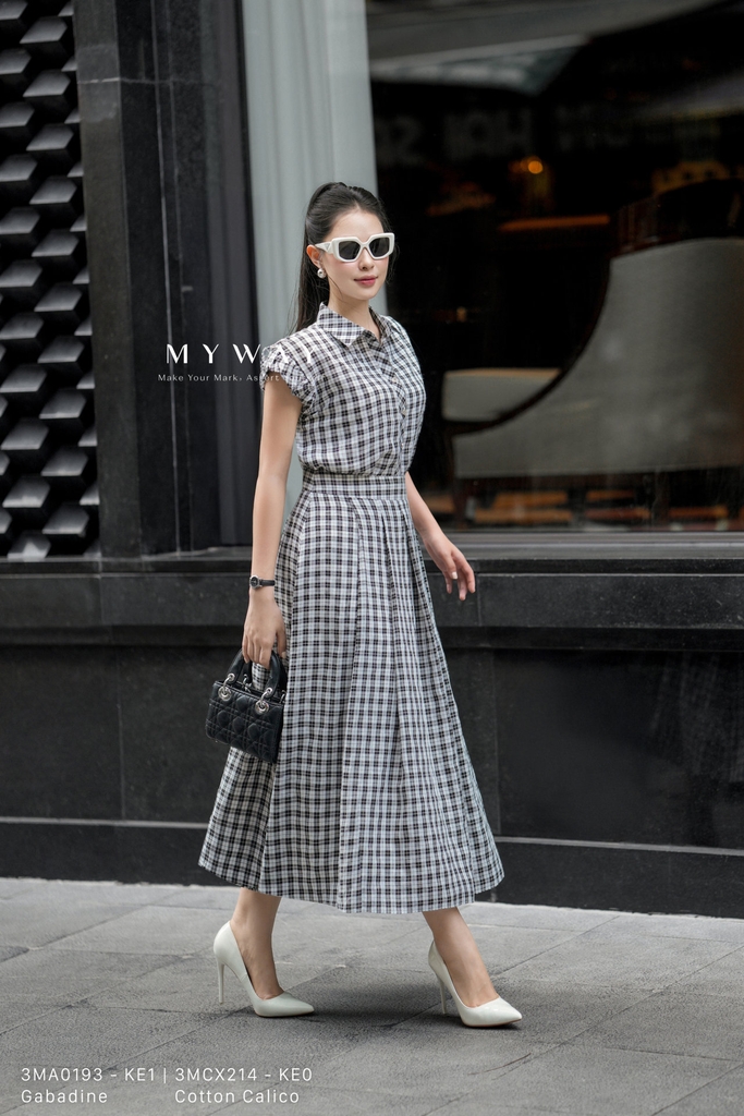 Chân váy xòe xếp ly dài qua bắp, có khóa bên, không túi, có lót. Tinh tế với họa tiết vải kẻ ô vuông đen trắng tạo nên khác biệt, thời thượng, hiện đại cho các Quý cô.