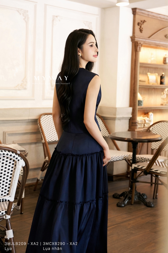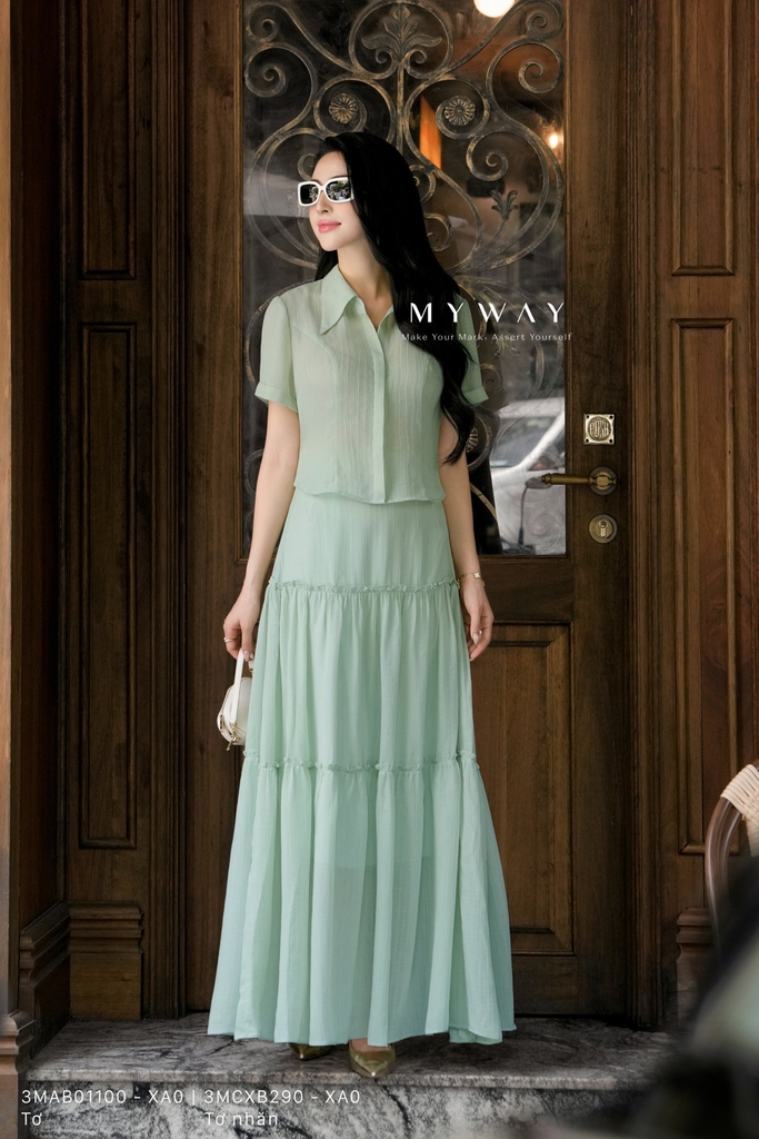 Chân váy xòe 3 tầng, dài trên mắt cá chân, khóa sau, không túi, có lót. Thiết kế tinh tế với kết cấu tầng mềm mại, bồng bềnh, tôn dáng và tạo sự uyển chuyển khi di chuyển. Màu sắc đa dạng: đỏ (chất liệu tơ), xanh tím than (chất liệu lụa nhăn) và xanh mint (chất liệu tơ nhăn) – tất cả đều được làm từ chất liệu nhập khẩu cao cấp đã qua xử lý, giúp giữ phom đẹp, bề mặt vải mềm mại và tạo cảm giác sang trọng.Kiểu dáng 3 tầng dễ mặc, giúp che khuyết điểm cơ thể hiệu quả, phù hợp với nhiều vóc dáng. Sản phẩm mang lại sự thoải mái cho người mặc, đồng thời toát lên vẻ hiện đại, thanh lịch và có khả năng phối đồ cao, từ dạo phố, gặp gỡ bạn bè đến những buổi tiệc nhẹ.