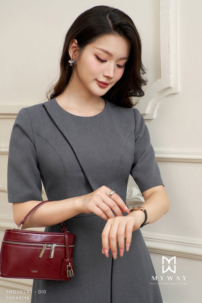 Đầm xòe dáng trên ôm dưới xòe với thiết kế cổ tròn và chiều dài qua bắp, mang đến sự cân đối, nữ tính và thanh lịch. Chất liệu Gabadine nhập khẩu cao cấp sau xử lý không chỉ giữ phom dáng chuẩn chỉnh mà còn tạo hiệu ứng rủ mềm tự nhiên, hiện đại và quyến rũ. Điểm nhấn đặc biệt nằm ở gam màu ghi cùng kết cấu váy cùng chi tiết lé vải khác màu, tạo nên sự khác biệt tinh tế, giúp tổng thể trở nên độc đáo và cuốn hút hơn. Phần chân váy xòe nhẹ vừa khéo léo che khuyết điểm, vừa tôn lên nét duyên dáng của người mặc. Thiết kế có túi và lót tiện lợi, mang lại sự thoải mái tối đa, đồng thời toát lên vẻ lịch sự, phong cách hiện đại cùng khả năng phối đồ linh hoạt trong nhiều dịp.