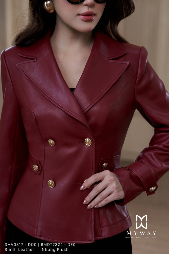 Áo vest dáng ôm vừa, cổ biến kiểu, dài ngang hông mang đến vẻ đẹp hiện đại và thời thượng. Thiết kế được tạo nên từ chất liệu da nhập khẩu cao cấp đã qua xử lý, giúp giữ phom chuẩn và tôn dáng thanh thoát. Gam màu đỏ đô sang trọng kết hợp cùng kết cấu tinh tế tạo nên điểm nhấn nổi bật, thể hiện phong thái tự tin và cuốn hút. Phom áo ôm vừa giúp dễ dàng phối hợp với nhiều trang phục khác nhau, phù hợp cho cả môi trường công sở lẫn những dịp đặc biệt. Sự thoải mái và chỉn chu trong từng chi tiết khiến chiếc áo trở thành lựa chọn lý tưởng cho quý cô yêu phong cách hiện đại và thanh lịch.