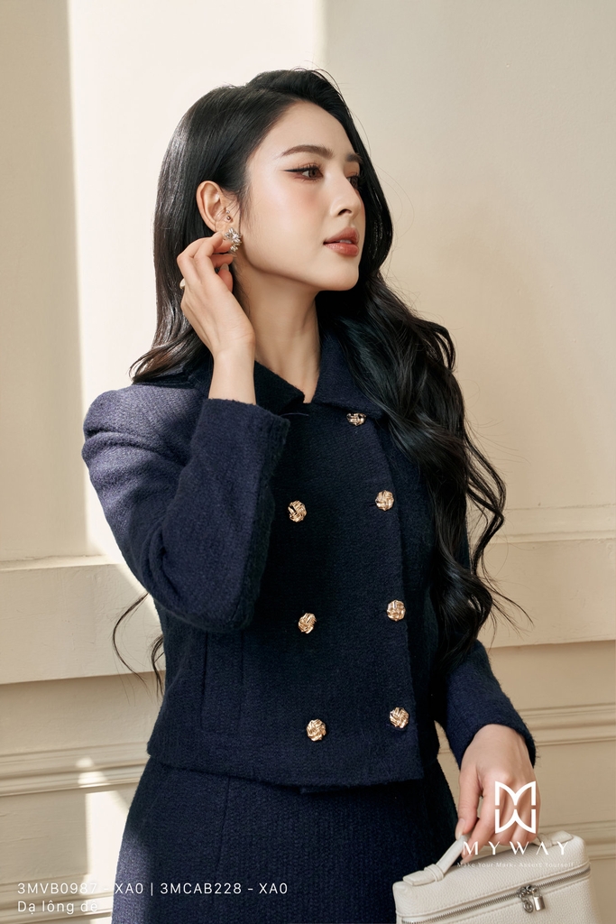 Áo khoác ôm vừa xanh tím than được thiết kế với phom ôm mềm mại, dài ngang mông, cổ biến kiểu tinh tế và tay dài thanh lịch, tạo nên tổng thể hiện đại nhưng vẫn giữ nét trang nhã. Sản phẩm sử dụng chất liệu dạ lông dê nhập khẩu cao cấp đã qua xử lý để giữ phom chuẩn chỉnh, bề mặt dạ sần sang trọng kết hợp cùng khuy trang trí nổi bật, mang lại điểm nhấn cuốn hút cho trang phục. Áo được hoàn thiện với túi cơi tiện dụng và lớp lót cao cấp hỗ trợ giữ dáng, nâng cao trải nghiệm khi mặc. Mỗi chi tiết đều được chăm chút nhằm mang lại sự thoải mái cho thượng khách, toát lên vẻ lịch sự, phong cách hiện đại và khả năng phối đồ linh hoạt trong nhiều hoàn cảnh.