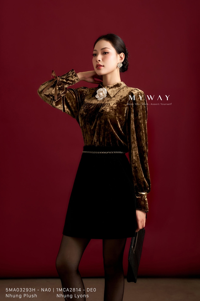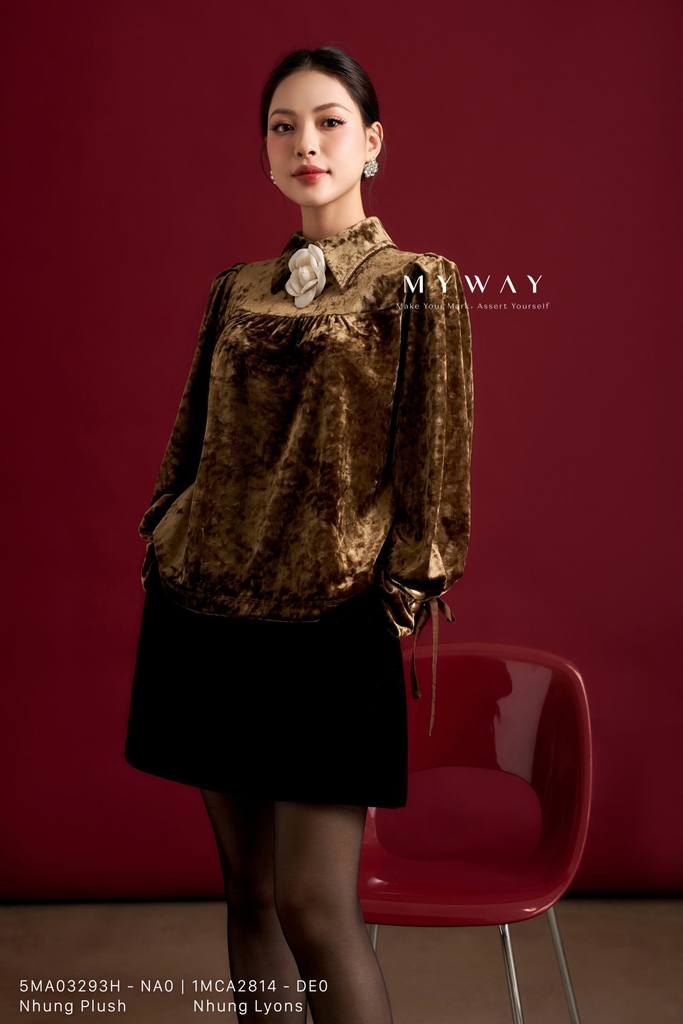 Áo sơ mi dáng suông vừa với thiết kế cổ Đức thanh lịch, chiều dài ngang hông, tay dài và khóa sau kín đáo, không túi và không lót mang đến vẻ ngoài gọn gàng, tinh tế; sản phẩm sử dụng gam màu nâu sang trọng, sắc nâu ấm áp tạo cảm giác nền nã và dễ dàng phối cùng quần âu, chân váy hay vest để hoàn thiện phong cách thanh lịch; áo được thiết kế từ chất liệu Nhung Plush (nhung mềm) nhập khẩu cao cấp đã qua xử lý, bề mặt vải mềm mịn, bắt sáng nhẹ và lên phom chuẩn chỉnh, tôn lên đường nét quyến rũ hiện đại; điểm nhấn nằm ở chi tiết hoa cài trang trí tinh tế kết hợp cùng phần cổ áo được chăm chút tỉ mỉ, tạo nên tổng thể hài hòa và cuốn hút; thiết kế mang lại sự thoải mái cho người mặc, đồng thời toát lên phong cách thanh lịch, hiện đại với khả năng phối đồ linh hoạt trong nhiều dịp khác nhau.