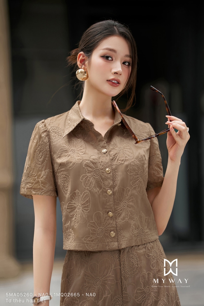 Áo sơ mi crop cổ Đức với độ dài ngang eo mang đến vẻ ngoài hiện đại, trẻ trung và đầy thu hút. Được chế tác từ chất liệu tơ thêu họa tiết hoa lá nâu nhập khẩu cao cấp, áo không chỉ mềm mại, thoáng mát mà còn giữ phom chuẩn chỉnh, tạo nên nét sang trọng trong từng chi tiết. Phom dáng crop giúp tôn vòng eo một cách tinh tế, phù hợp khi kết hợp cùng chân váy cạp cao hoặc quần ống suông. Thiết kế có lót, tay ngắn, đảm bảo sự thoải mái và chỉn chu trong từng chuyển động. Họa tiết hoa lá thêu nổi bật trên nền vải tơ cao cấp làm nổi bật vẻ thanh tao và cá tính của người mặc. Đây là lựa chọn lý tưởng cho quý cô yêu sự kết hợp giữa thời thượng và tinh tế trong phong cách thường nhật.