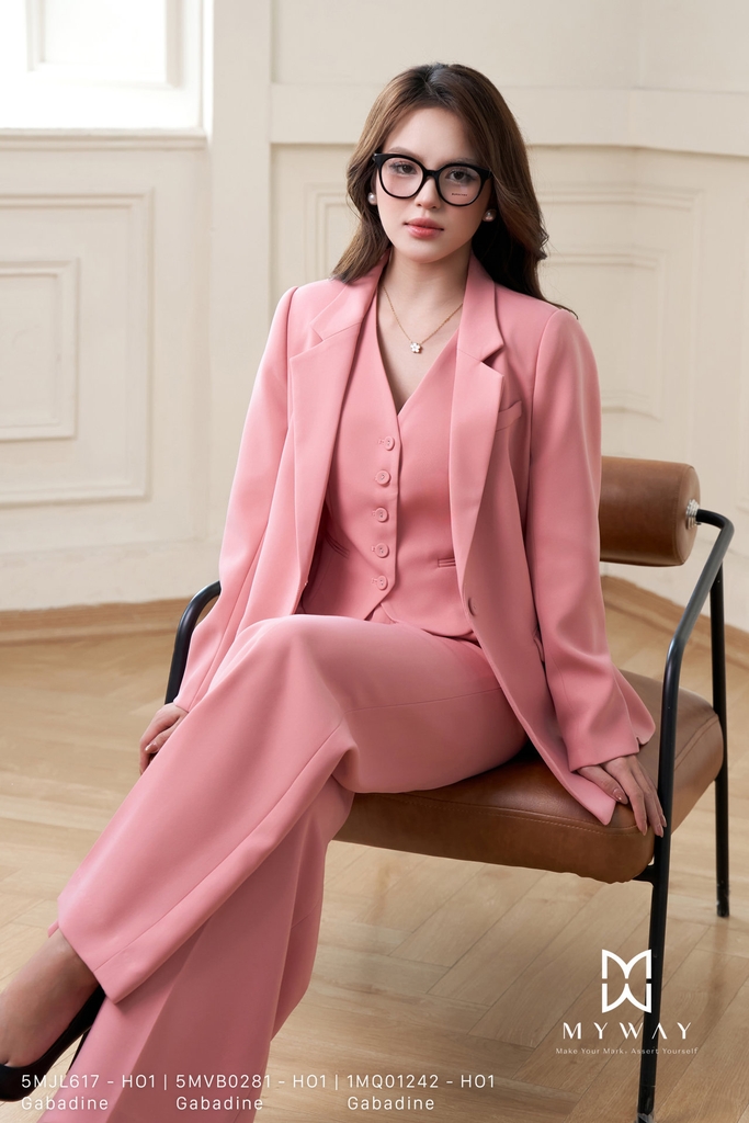 Áo gile dáng ôm vừa có cổ tim, dài ngang hông. Thiết kế không tay cá tính, có lót thanh lịch. Mẫu áo tông hồng tôn da, được thiết kế từ chất liệu Gabadine nhập khẩu cao cấp đã qua xử lý và tạo form dáng quyến rũ, hiện đại. Điểm nhấn khuy trang trí ấn tượng và đai sau để tinh chỉnh vóc dáng giúp nâng tầm sự sang trọng cho người mặc.