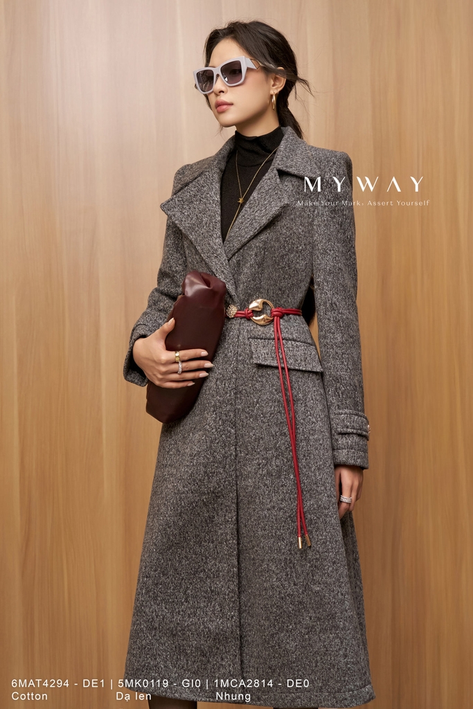 Nằm trong BST mới nhất từ MY WAY, thuộc dòng sản phẩm Frenchy thanh lịch, cá tính theo phong cách Out-door phóng khoáng của Quý cô hiện đại, áo măng tô My Way mang hơi hướng trẻ trung, năng động “nạp” năng lượng cho ngày làm việc năng lượng.