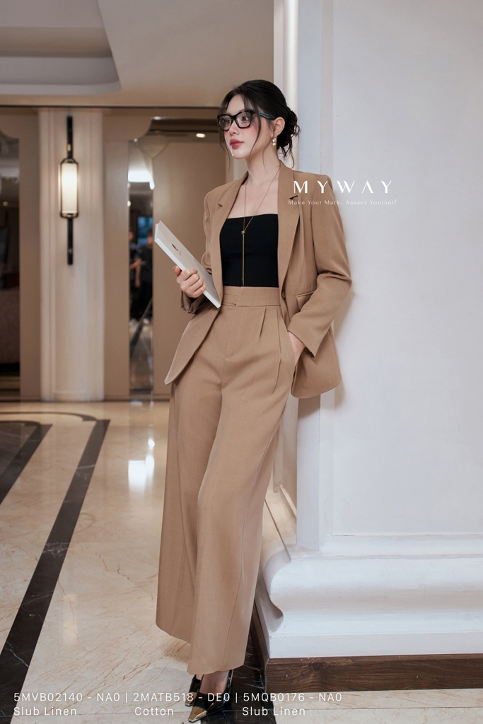 Áo vest dáng suông vừa, chiều dài chùm mông mang đến vẻ chỉn chu và cân đối cho người mặc. Thiết kế cổ hai ve cổ điển kết hợp tay dài có đệm vai tạo nên phom dáng chuẩn chỉnh, tôn lên thần thái tự tin và chuyên nghiệp. Chất liệu Slub Linen (xước Nhật, đũi xước) nhập khẩu cao cấp giúp áo giữ form ổn định, thấm hút tốt và mang lại cảm giác thoáng mát khi mặc. Gam màu nâu vàng trang nhã hòa quyện giữa nét hiện đại và tinh tế, dễ dàng phối hợp cùng nhiều trang phục khác. Với phom dáng trẻ trung, hiện đại và khả năng che khuyết điểm khéo léo, chiếc vest này là lựa chọn lý tưởng cho quý cô yêu sự thanh tao và phong cách thời thượng.