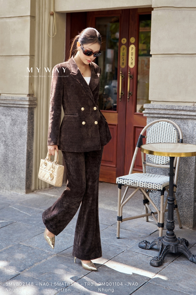 Áo vest dáng suông vừa, cổ 2 ve, dài chùm mông, tay dài, có đệm vai và ken vai, được hoàn thiện tinh tế với chi tiết khuy trang trí và bề mặt gân tăm sang trọng trong gam màu nâu ấm áp. Sản phẩm được thiết kế từ chất liệu nhung nhập khẩu cao cấp đã qua xử lý kỹ lưỡng, giúp phom áo giữ dáng chuẩn, lên form mềm mại nhưng vẫn đầy khí chất hiện đại. Điểm nhấn nằm ở chi tiết khuy trang trí tinh xảo, tạo nên nét cá tính và thanh lịch đặc trưng cho người mặc. Áo vest mang lại cảm giác thoải mái, dễ chịu, đồng thời toát lên vẻ cá tính, hiện đại, thể hiện gu thẩm mỹ tinh tế của quý cô sành điệu.