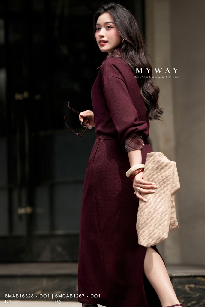 Áo thời trang phom bo gấu, dài ngang hông, mang đến dáng vẻ gọn gàng và trẻ trung. Thiết kế tay dài cùng cổ biến kiểu tạo điểm nhấn tinh tế, giúp tổng thể thêm cuốn hút và hiện đại. Gam màu đỏ burgundy sang trọng làm nổi bật sắc thái ấm áp nhưng vẫn đầy khí chất, phù hợp nhiều tone da và dễ phối trong mùa lạnh. Chất liệu dạ nhập khẩu cao cấp đã qua xử lý giúp áo giữ phom chuẩn chỉnh, bề mặt mịn và ấm, tạo cảm giác thoải mái khi mặc. Điểm nhấn nằm ở phần cổ phối độc đáo kết hợp cùng phom dáng và chất liệu vải, mang đến nét thanh lịch và tính ứng dụng cao, phù hợp nhiều phong cách và bối cảnh khác nhau.