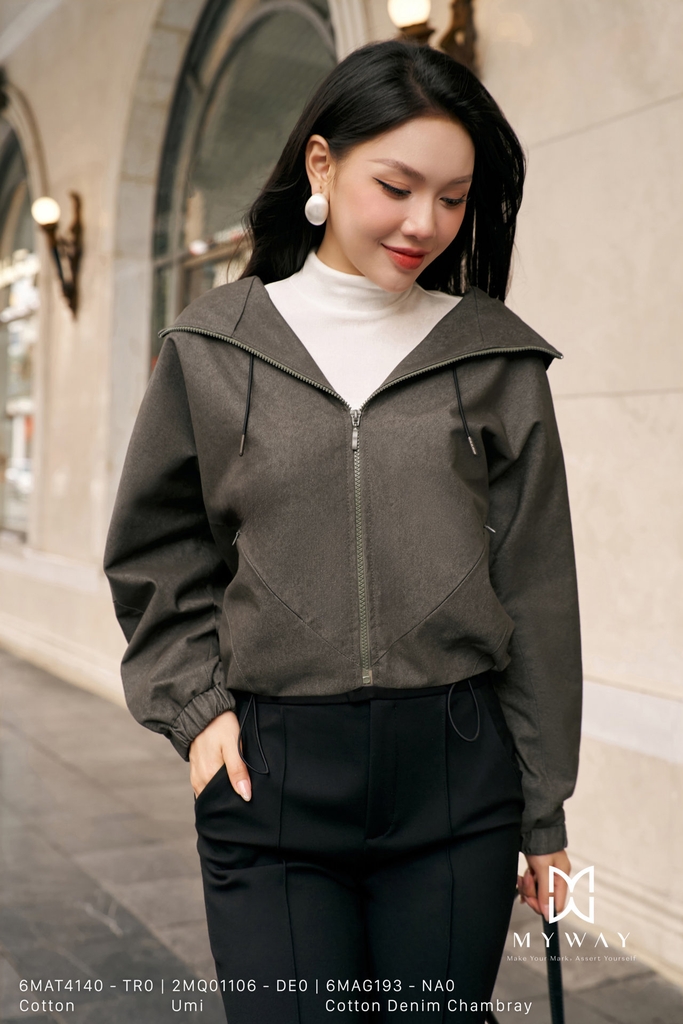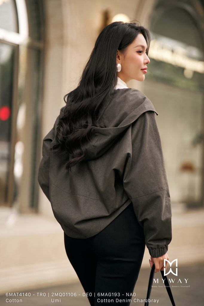 Áo kiểu biến kiểu, cổ có mũ, dài chùm mông với tay dài và khóa trước được thiết kế từ chất liệu Cotton Denim Chambray nhập khẩu cao cấp đã qua xử lý, giúp áo lên phom chuẩn chỉnh và mang lại cảm giác thoải mái khi mặc. Áo có túi tiện lợi và lót bên trong, điểm nhấn tinh tế nằm ở kết cấu và chất liệu vải mềm mại, tạo phom dáng hiện đại, dễ mặc và phù hợp với nhiều phong cách. Sản phẩm có màu ghi rêu, dễ phối đồ và tôn lên vẻ thanh lịch, phong cách hiện đại.