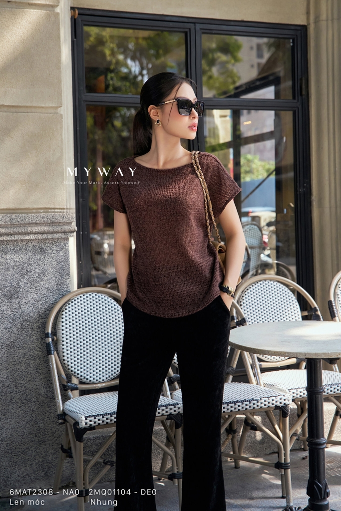 Áo kiểu dáng suông A với cổ thuyền và độ dài ngang mông mang đến vẻ đẹp nhẹ nhàng, tinh tế nhưng vẫn đầy phong cách. Được thiết kế từ chất liệu len móc nhập khẩu cao cấp đã qua xử lý kỹ lưỡng, sản phẩm giữ phom chuẩn chỉnh, bề mặt dệt họa tiết tinh xảo trong tông nâu trầm sang trọng, gợi cảm giác ấm áp và hiện đại. Tay ngắn tạo sự năng động, dễ ứng dụng trong nhiều hoàn cảnh từ công sở, dạo phố đến những buổi trà chiều thanh lịch. Điểm nhấn nằm ở phom suông tự nhiên kết hợp cùng chất liệu len dệt họa tiết, giúp áo vừa thoải mái vừa tôn dáng, dễ phối cùng quần suông, chân váy hoặc quần jeans để tạo phong cách đa dạng.