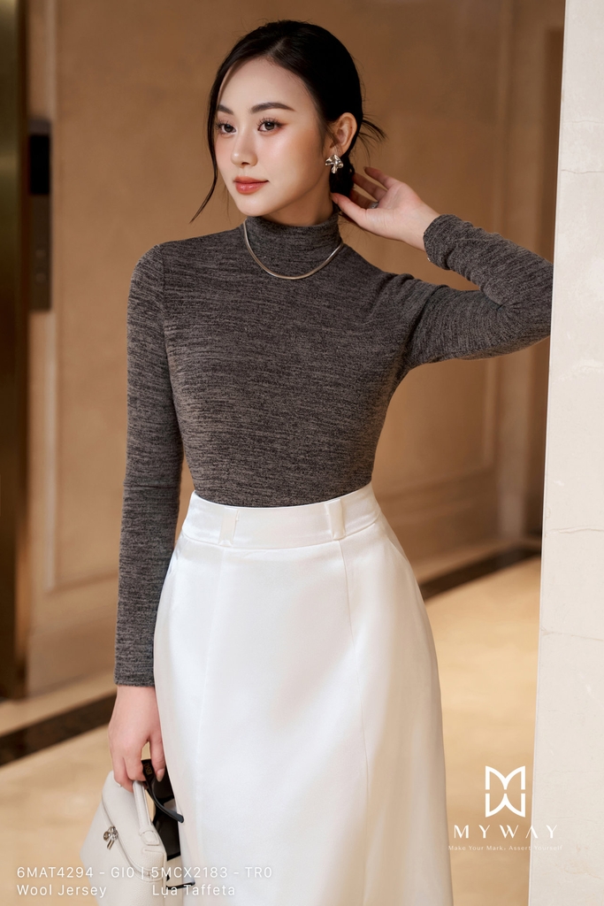 Áo cotton dáng ôm cổ lọ, tay dài và dài ngang hông mang phong cách hiện đại, tinh giản nhưng đầy cuốn hút. Sản phẩm được thiết kế từ chất liệu Wool Jersey (thun tăm, thun len) nhập khẩu cao cấp đã qua xử lý kỹ lưỡng, giúp giữ phom chuẩn chỉnh, co giãn thoải mái và thấm hút tốt. Chất liệu mềm mại ôm sát cơ thể vừa vặn, tôn dáng mà vẫn đảm bảo sự dễ chịu khi vận động. Điểm nhấn nằm ở bề mặt vải cao cấp cùng gam màu đa dạng — nâu, nâu burlywood, đỏ, xanh da trời, ghi, nâu chocolate, đỏ vang và nâu brunette — mang lại sự lựa chọn phong phú, phù hợp với nhiều phong cách khác nhau. Với thiết kế cổ lọ thanh lịch và phom dáng trẻ trung, áo thun là item lý tưởng để phối cùng quần suông, chân váy hay áo khoác, giúp quý cô toát lên vẻ tinh tế, hiện đại và đầy tự tin trong mọi hoàn cảnh.