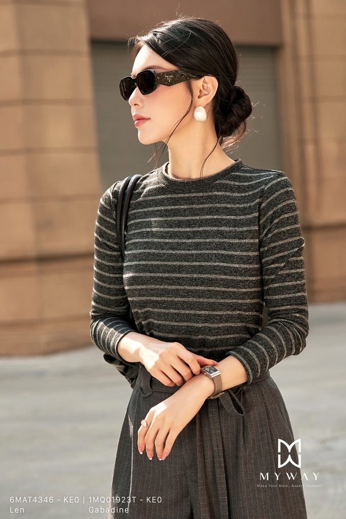 Áo len được thiết kế phom ôm vừa tôn dáng, cổ tròn thanh lịch, chiều dài ngang mông dễ mặc và dễ phối đồ, tay dài mang lại cảm giác ấm áp và gọn gàng, sản phẩm không túi, không lót, tập trung làm nổi bật chất liệu vải và phom dáng tinh tế, sử dụng chất liệu len nhập khẩu cao cấp đã qua xử lý giúp bề mặt mềm mại, giữ phom chuẩn và tạo cảm giác thoải mái khi mặc, điểm nhấn nằm ở họa tiết kẻ ngang hiện đại kết hợp hài hòa với chất liệu vải, gam màu ghi trang nhã mang vẻ nhẹ nhàng, trung tính, trong khi phiên bản nền đen kẻ ghi tạo chiều sâu thị giác, tăng nét cá tính và sang trọng, dễ dàng phối cùng quần âu, chân váy hoặc jeans, mang đến phong cách thanh lịch, hiện đại và tính ứng dụng cao trong nhiều hoàn cảnh.
