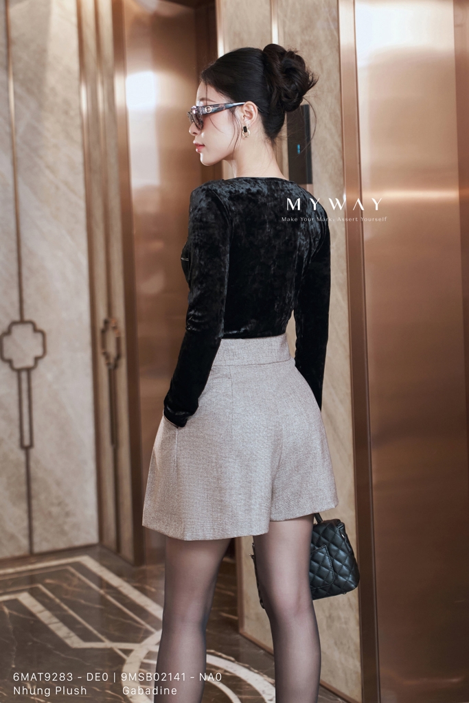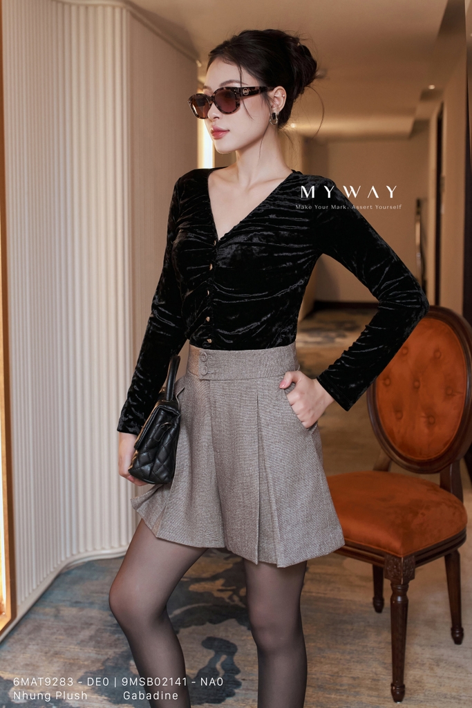 Áo kiểu dáng ôm vừa với thiết kế cổ tim nhẹ nhàng, dài ngang hông và tay dài thanh lịch, tạo nên nét quyến rũ tinh tế cho người mặc. Sản phẩm được chế tác từ chất liệu Nhung Plush (nhung mềm) dệt kim tuyến sần nhập khẩu cao cấp, đã qua xử lý kỹ lưỡng để giữ phom chuẩn chỉnh, mềm mại và có độ thấm hút tốt. Các tông màu đen, nâu và đỏ mang lại vẻ sang trọng, thời thượng, phù hợp với phong cách hiện đại của quý cô thành thị. Điểm nhấn của thiết kế nằm ở chất liệu vải nhung ánh kim tuyến kết hợp cùng hàng khuy trang trí tinh xảo, tạo hiệu ứng nổi bật mà vẫn giữ được sự thanh nhã. Phom áo ôm nhẹ giúp tôn dáng, che khuyết điểm khéo léo, dễ dàng phối hợp với nhiều kiểu trang phục khác nhau. Áo mang lại cảm giác thoải mái cho người mặc, tôn lên vẻ thanh lịch, hiện đại và đầy cuốn hút trong mọi hoàn cảnh.