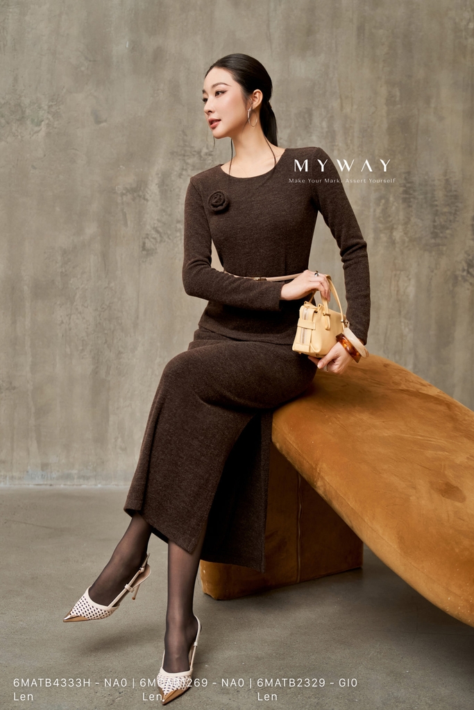 Áo thun với phom ôm vừa, cổ tròn và chiều dài ngang mông mang đến vẻ đẹp gọn gàng, tinh tế nhưng vẫn đảm bảo sự thoải mái cho người mặc. Thiết kế tay dài cùng chất liệu len nhập khẩu cao cấp giúp áo giữ phom chuẩn chỉnh, mềm mại và ấm áp, đồng thời tạo cảm giác sang trọng đặc trưng. Tông nâu thanh lịch được xử lý tinh xảo, mang lại chiều sâu thị giác và dễ dàng phối hợp với nhiều trang phục. Điểm nhấn nổi bật của sản phẩm nằm ở hoa cài 3D tinh tế, tạo điểm chạm nữ tính và thu hút trên nền chất liệu len mịn. Áo mang lại sự thoải mái cho thượng khách, toát lên vẻ thanh lịch, hiện đại và sở hữu khả năng phối đồ linh hoạt. Sản phẩm được đính kèm hoa cài để tăng thêm nét duyên dáng cho tổng thể.