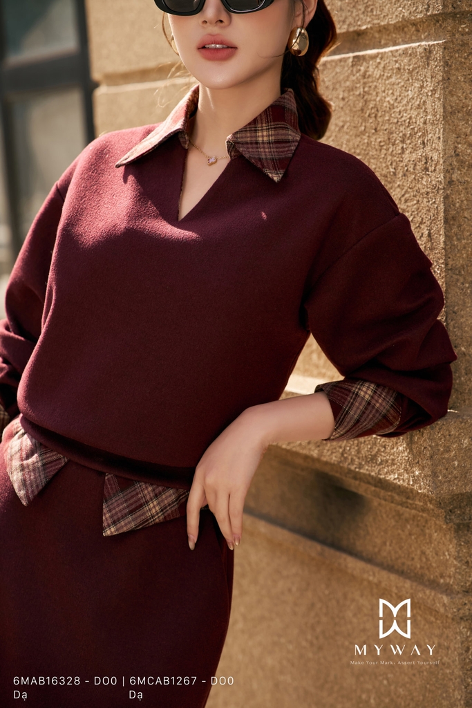 Chân váy A phom suông vừa, dài qua bắp, mang đến vẻ thanh lịch và mềm mại cho dáng người. Thiết kế không lót giúp váy giữ được độ rủ tự nhiên, trong khi kết cấu vải dạ cao cấp tạo cảm giác ấm áp và đứng phom hoàn hảo. Gam màu đỏ burgundy sang trọng là điểm nhấn nổi bật, tôn lên nét quý phái và cuốn hút của người mặc. Váy được hoàn thiện từ chất liệu dạ nhập khẩu cao cấp đã qua xử lý, đảm bảo độ bền, độ mịn và form dáng hiện đại. Nhờ sự kết hợp hài hòa giữa chất liệu và phom dáng, thiết kế mang lại sự thoải mái cho thượng khách, đồng thời dễ dàng phối đồ, phù hợp nhiều phong cách và bối cảnh khác nhau.