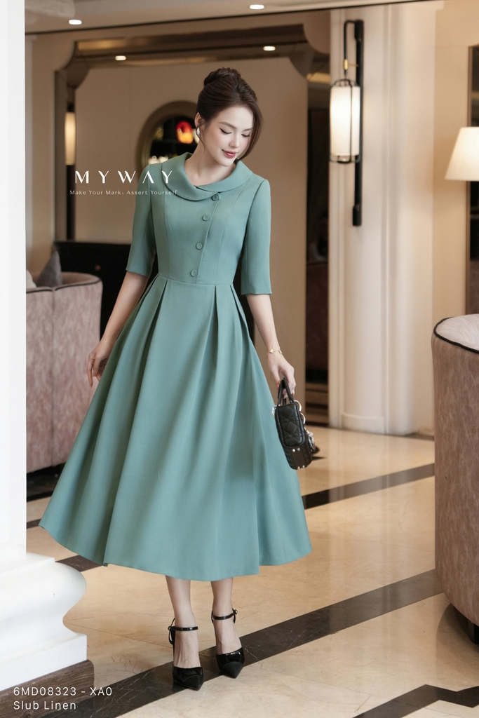Nằm trong BST mới nhất từ My Way, thuộc dòng sản phẩm Frenchy thanh lịch, tinh tế, item đầm xòe không chỉ giúp vẻ ngoài của Quý cô thêm phần sang trọng và nổi bật, mà còn luôn khiến nàng tìm thấy niềm vui trong việc lựa chọn và mặc đẹp mỗi ngày.