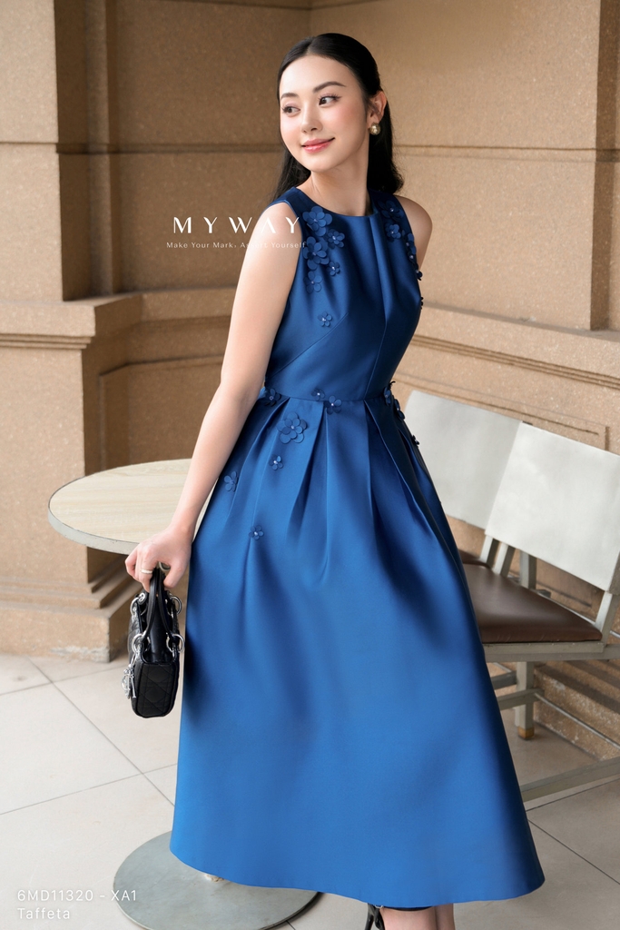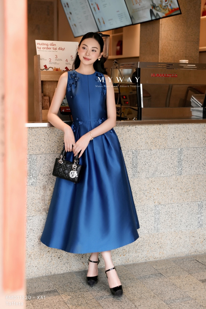Đầm xòe xếp ly với thiết kế trên ôm, chân váy xếp ly bồng xòe mềm mại, cổ tròn duyên dáng và chiều dài qua bắp, mang đến nét nữ tính thanh lịch. Chất liệu Taffeta nhập khẩu cao cấp đã qua xử lý giúp phom dáng chuẩn chỉnh, bề mặt vải bắt sáng tinh tế, tạo hiệu ứng sang trọng hiện đại. Sắc xanh da trời dịu nhẹ hòa quyện cùng xanh cô-ban sâu lắng tạo nên bảng màu thời thượng, vừa trẻ trung vừa thanh tao. Điểm nhấn hoa 3D tinh xảo trên thân áo cùng phần tùng váy xòe xếp ly khéo léo che khuyết điểm, tôn trọn vóc dáng người mặc. Thiết kế có túi tiện dụng, có lót mềm mại, khóa sau tinh gọn, mang lại sự thoải mái tối đa. Đây là lựa chọn hoàn hảo cho quý cô yêu thích sự tinh tế, hiện đại và khả năng phối đồ linh hoạt.