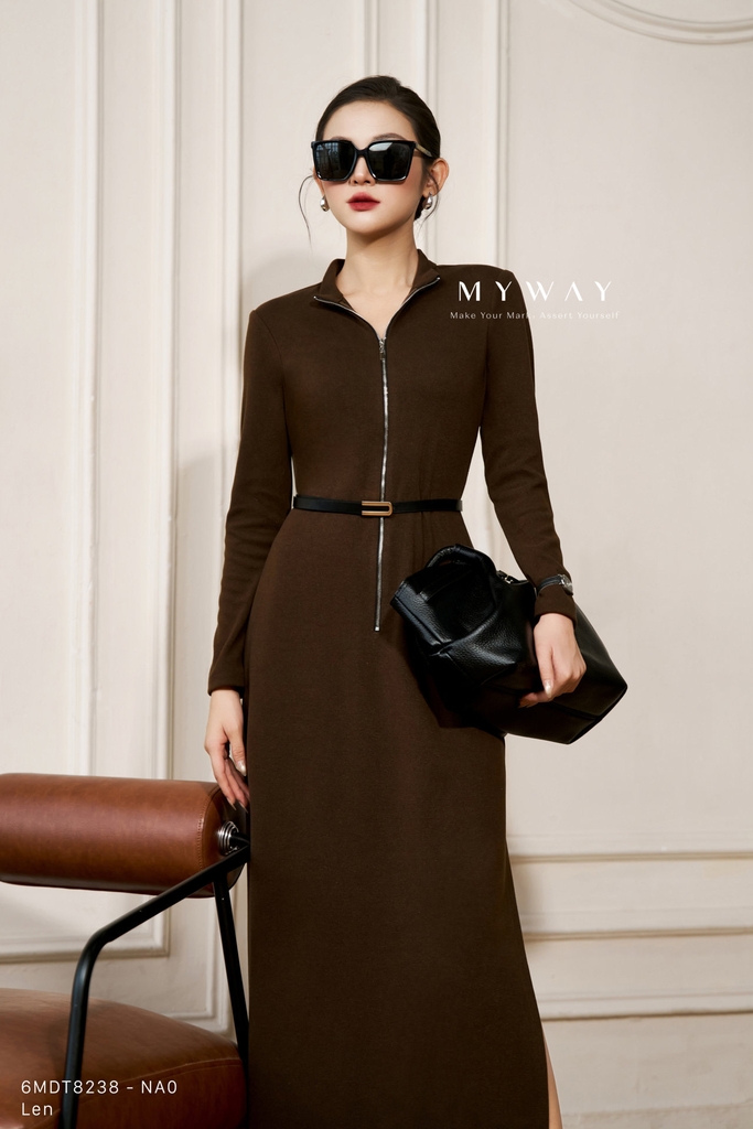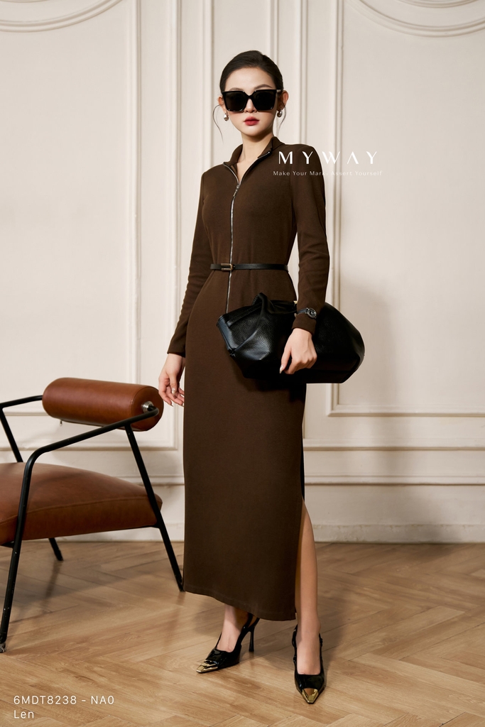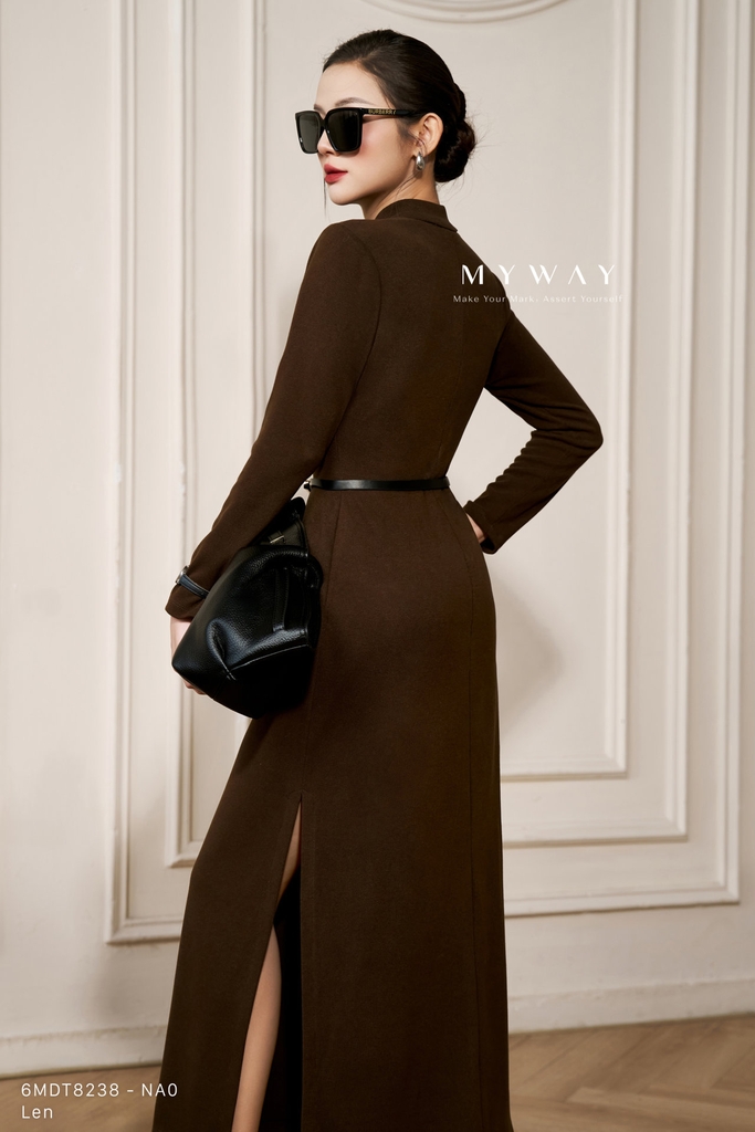 Đầm ôm dáng suông ôm với cổ biến kiểu và chiều dài qua bắp mang đến vẻ thanh lịch, hiện đại, dễ ứng dụng trong nhiều hoàn cảnh. Thiết kế tay dài, khóa trước, không túi và không lót giúp trang phục nhẹ, thoải mái và tôn lên đường nét tự nhiên của cơ thể. Sử dụng chất liệu len nhập khẩu cao cấp đã qua xử lý, váy giữ phom chuẩn, thấm hút tốt và tạo cảm giác dễ chịu cho người mặc. Điểm nhấn nằm ở chất liệu vải cùng phom dáng tinh tế, hai phiên bản màu nâu và đen giúp tôn da, dễ phối đồ và mang lại vẻ thanh lịch, hiện đại cho thượng khách.