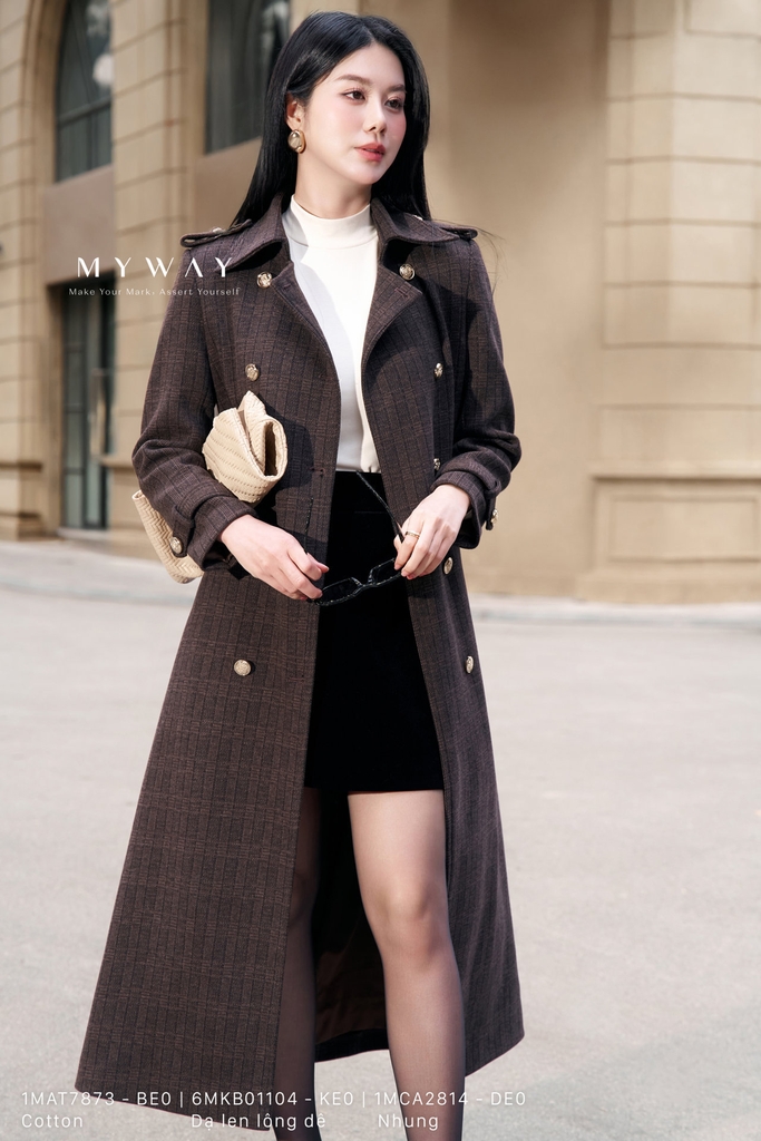 Nằm trong BST mới nhất từ MY WAY, thuộc dòng sản phẩm Frenchy thanh lịch, cá tính theo phong cách Out-door phóng khoáng của Quý cô hiện đại, áo măng tô My Way mang hơi hướng trẻ trung, năng động “nạp” năng lượng cho ngày làm việc năng lượng.