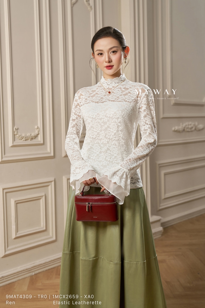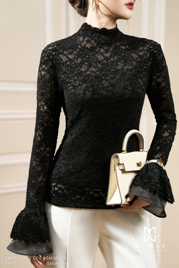 Áo kiểu ôm vừa, cổ lọ, dài ngang hông với thiết kế vai chờm mang đến vẻ thanh lịch, hiện đại. Tay dài, có lớp lót bên trong, tinh tế với họa tiết vải ren màu đen và trắng cao cấp nhập khẩu, đã qua xử lý để giữ form dáng quyến rũ và vừa vặn. Điểm nhấn của áo nằm ở chất liệu ren mềm mại và phom dáng ôm, dễ mặc, giúp tôn dáng và kết hợp linh hoạt với nhiều trang phục khác nhau. Sản phẩm mang lại sự thoải mái cho người mặc, toát lên vẻ sang trọng, hiện đại và khả năng phối đồ cao.