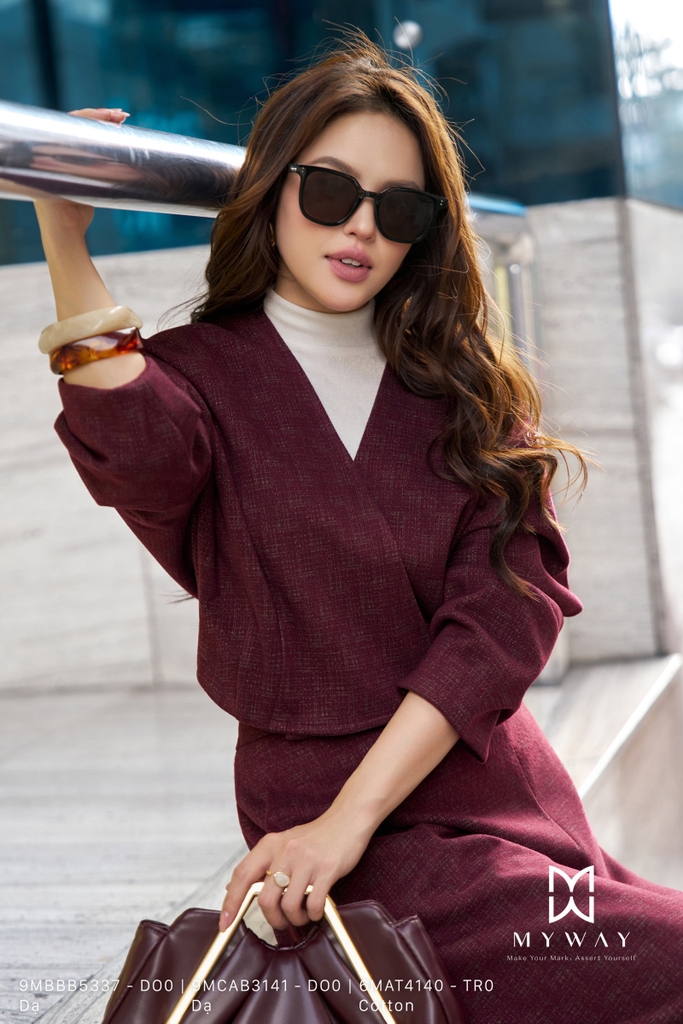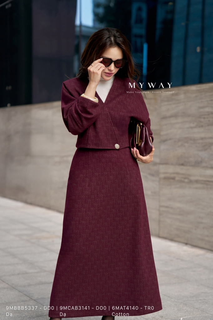 Nằm trong BST mới nhất từ MY WAY, thuộc dòng sản phẩm Frenchy thanh lịch, cá tính theo phong cách Out-door phóng khoáng của Quý cô hiện đại, áo khoác My Way mang hơi hướng trẻ trung, năng động “nạp” năng lượng cho ngày làm việc năng lượng.