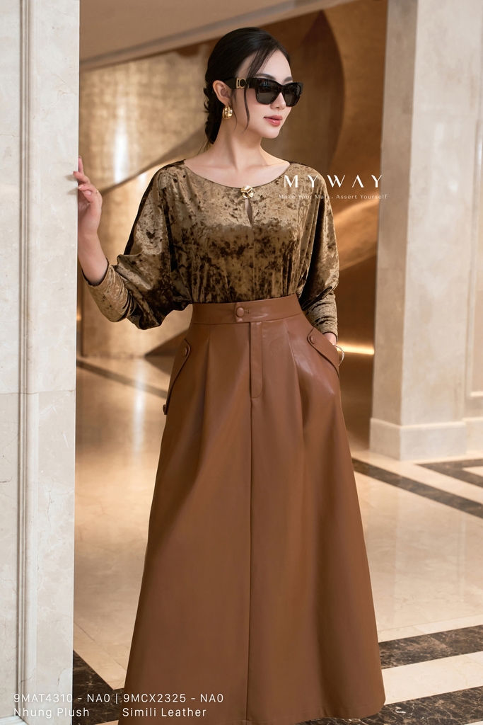 Chân váy xòe dáng dài qua bắp, thiết kế tinh tế với điểm nhấn ở kết cấu và phom váy mềm mại, nữ tính. Sản phẩm được chế tác từ chất liệu da nhập khẩu cao cấp đã qua xử lý, có độ bóng sang trọng, độ co giãn nhẹ giúp giữ phom chuẩn chỉnh và tạo cảm giác thoải mái khi di chuyển. Gam màu nâu, đỏ đun và tím mận mang đến nét đẹp thời thượng, quyến rũ và dễ phối đồ, phù hợp với nhiều phong cách từ thanh lịch đến hiện đại. Phom váy xòe nhẹ giúp tôn dáng và che khuyết điểm cơ thể một cách tinh tế. Chân váy có túi, có lót, đảm bảo sự tiện lợi và thoải mái cho người mặc. Đây là lựa chọn hoàn hảo cho quý cô yêu thích sự sang trọng và phong cách trong mùa Thu Đông.