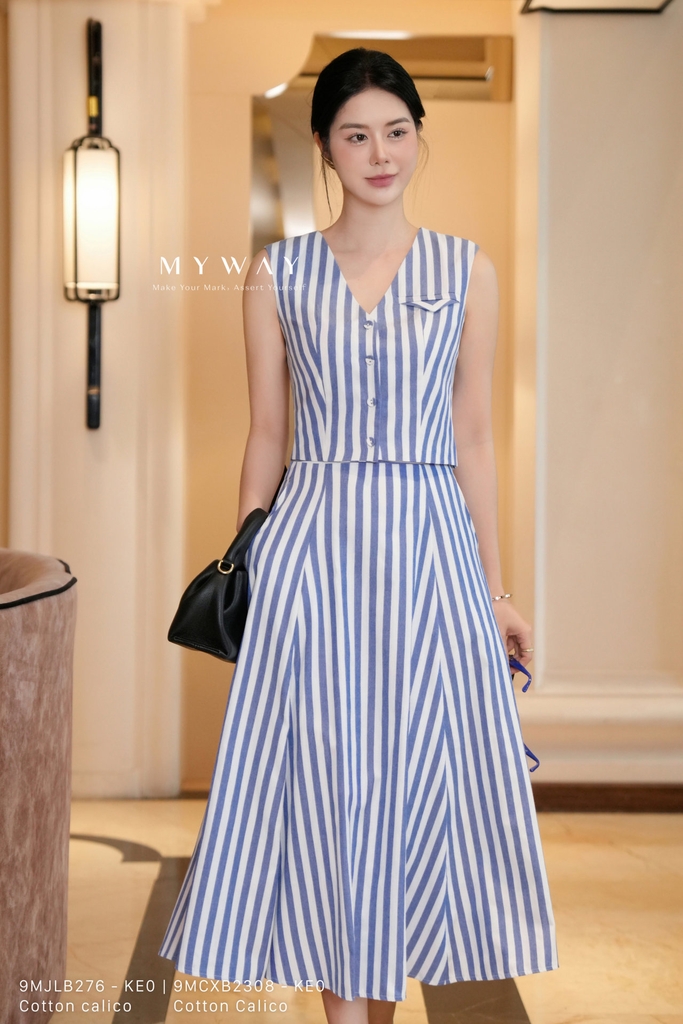 Chân váy xòe kẻ từ My Way mang đến vẻ ngoài trẻ trung, hiện đại với phom dáng xòe nhẹ, dài qua bắp chân giúp tôn dáng và che khuyết điểm hiệu quả. Thiết kế nổi bật với họa tiết kẻ sắc nét – xanh trắng hoặc đỏ trắng – tạo điểm nhấn năng động, dễ phối cùng nhiều kiểu áo. Được may từ chất liệu cotton calico nhập khẩu, váy lên phom chuẩn, mềm mại và thoáng mát, phù hợp cho cả ngày dài di chuyển. Một lựa chọn lý tưởng cho những quý cô yêu thích sự thoải mái nhưng vẫn đề cao tính thẩm mỹ và gu thời trang riêng.