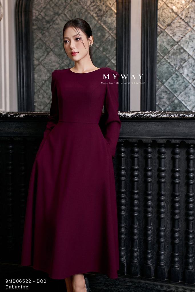 Đầm xòe trên ôm dưới xòe dài qua bắp này toát lên vẻ nữ tính, thanh lịch với cổ tròn và tay dài, được thiết kế từ chất liệu Gabadine nhập khẩu cao cấp đã qua xử lý, giữ phom chuẩn chỉnh, mềm mại mà vẫn tạo được dáng váy quyến rũ. Hai gam màu đỏ đô và xanh mint nổi bật, dễ dàng phối hợp phụ kiện, phù hợp cho nhiều dịp từ dạo phố đến công sở. Điểm nhấn của đầm nằm ở phom dáng tinh tế, giúp ôm nhẹ phần trên và xòe nhẹ phần dưới, khéo léo che khuyết điểm cơ thể, đồng thời mang lại sự thoải mái tối đa cho người mặc. Đây là lựa chọn lý tưởng cho quý cô yêu thích phong cách hiện đại, duyên dáng và dễ phối đồ.
